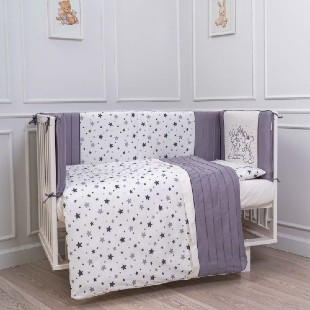Комплект 6 предметов для прямоугольной кроватки "Звездочет" цв.серый 6062