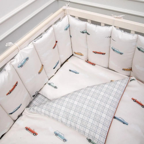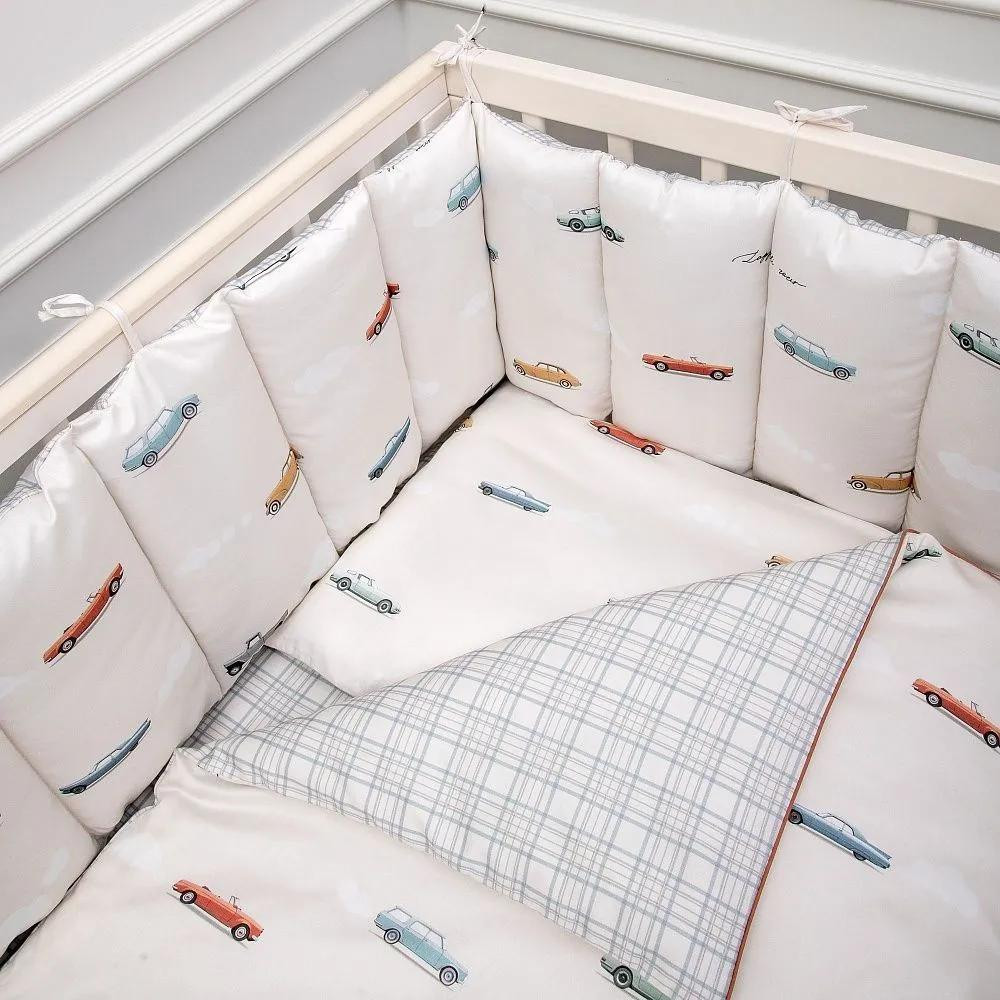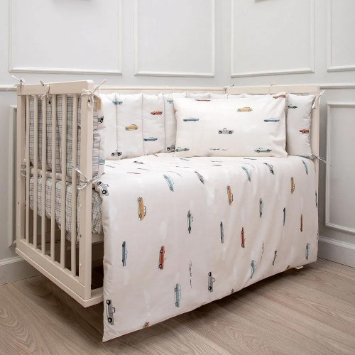 Набор 6пр.для прямоугольной кроватки "Маленький гонщик" цв.серо-голубой 6155
