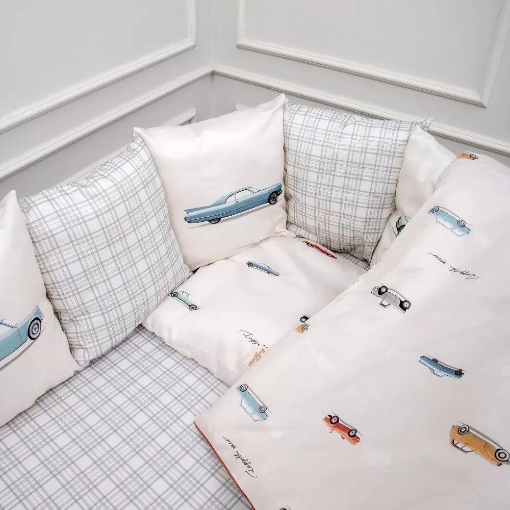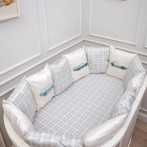 Набор 6пр.для овальной и прямоугольной кроватки "Маленький гонщик" цв.серо-голубой 6153