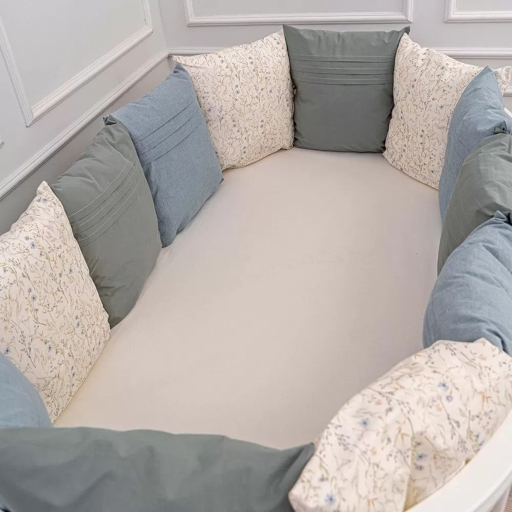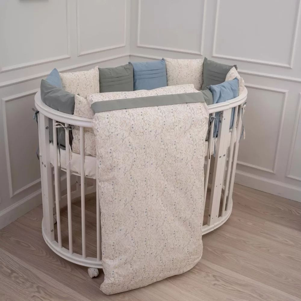К-т 6пр.для овальной и прямоугольной кроватки "Lappetti Garden" цв.серо-голубой 6119/1