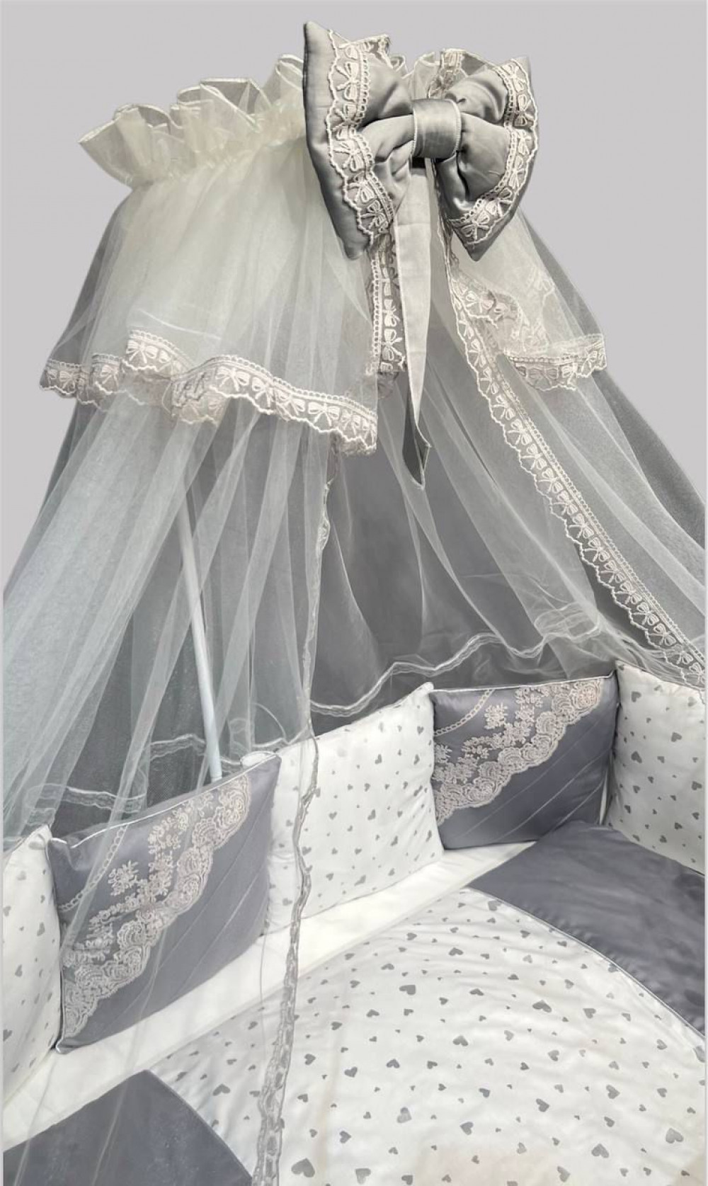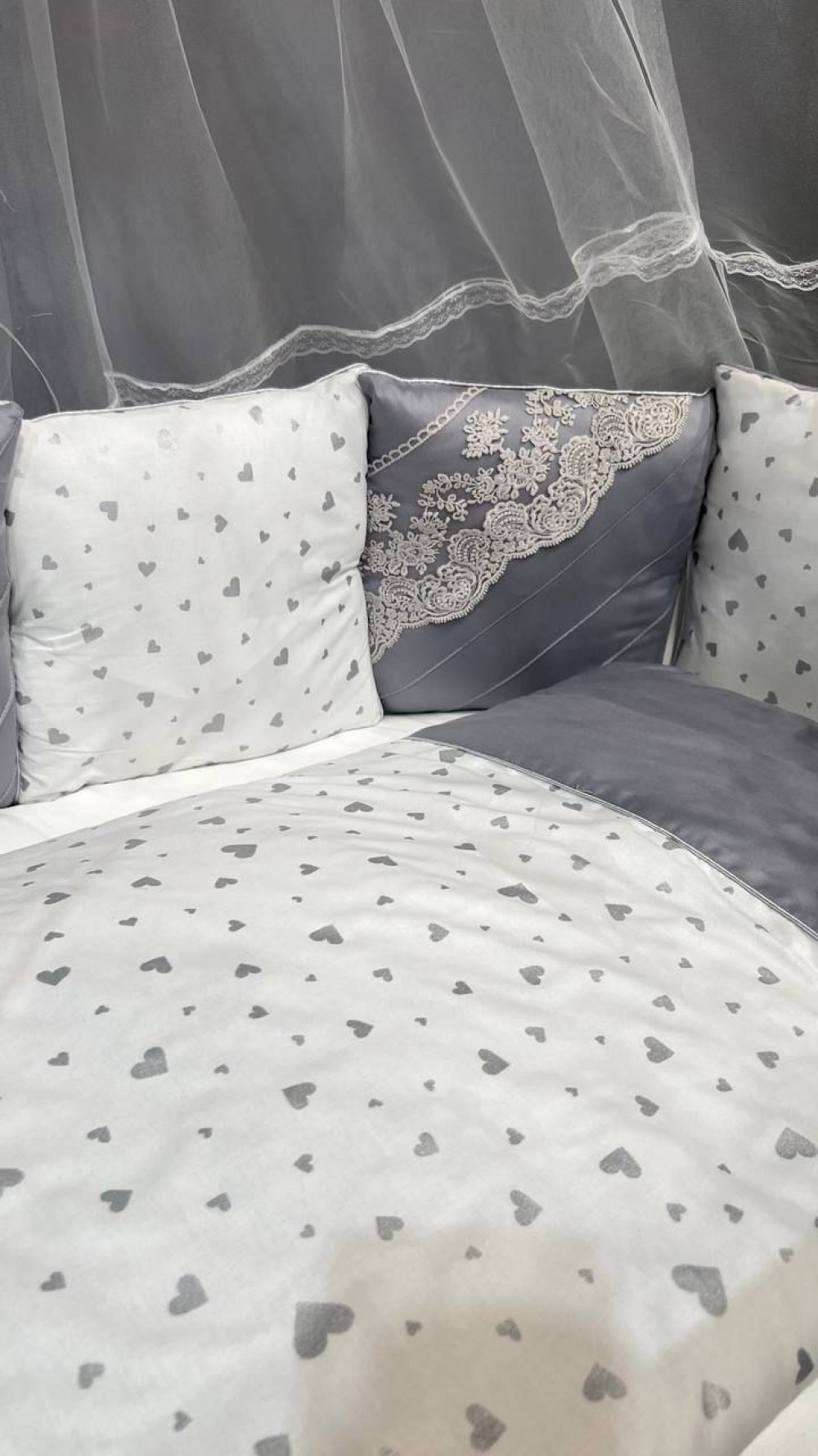Постельное белье 51 серый с сердечками
