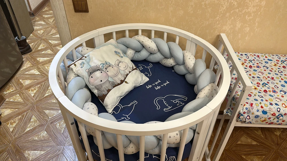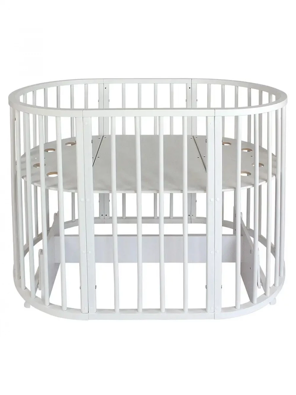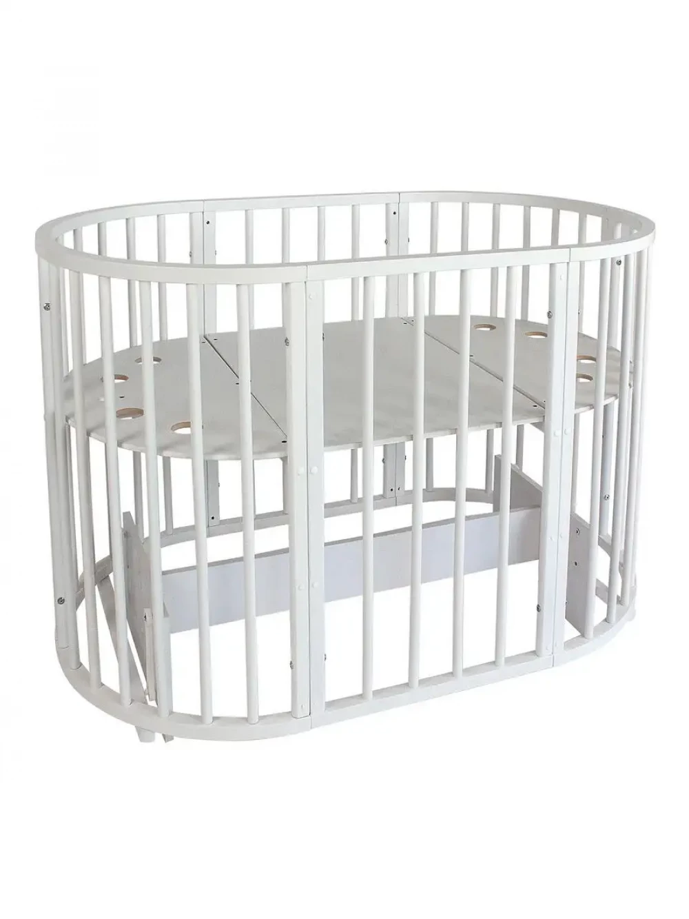 Кроватка-трансформер Indigo Simple 7 в 1 с маятником 125*75 (овал) и 75*75 (круг) белый