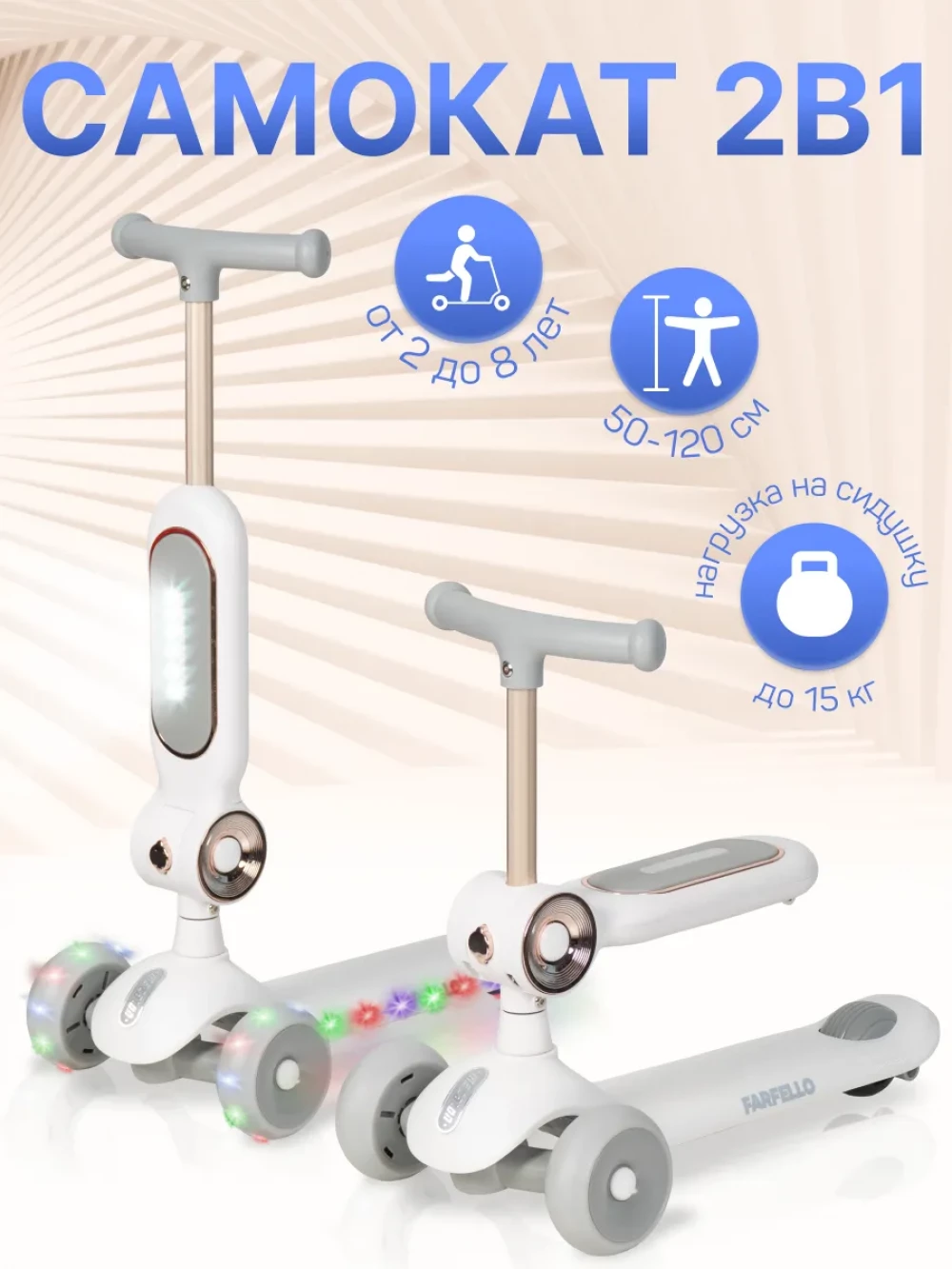Самокат 3-х колесный Farfello A-7 белый