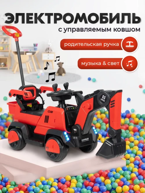 Электромобиль Farfello Экскаватор SR919 с ручкой Красный