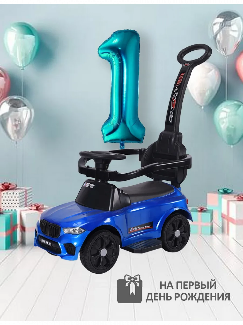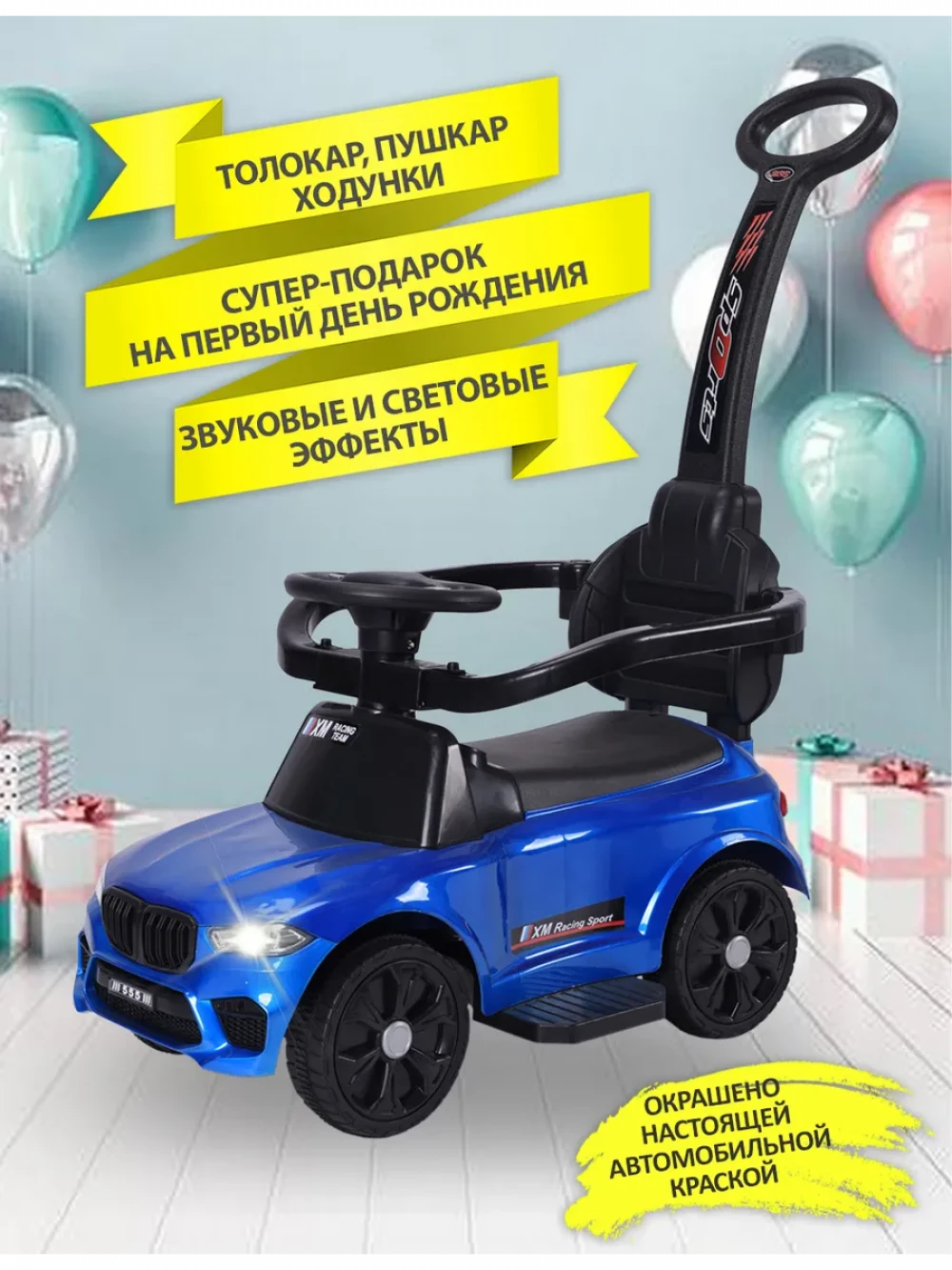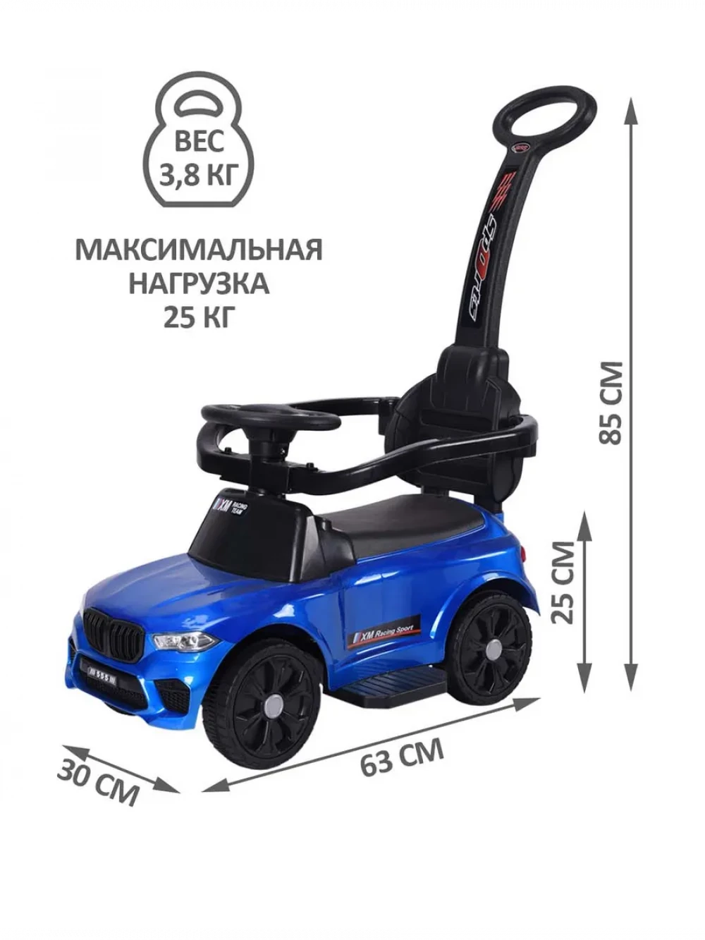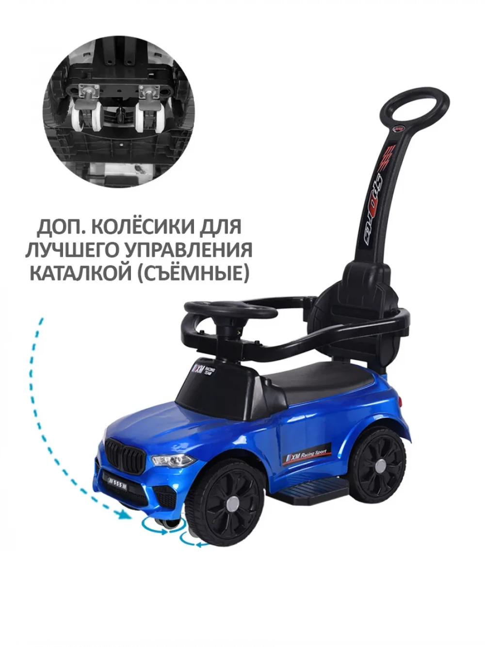 Каталка XM Racing с ручкой blue