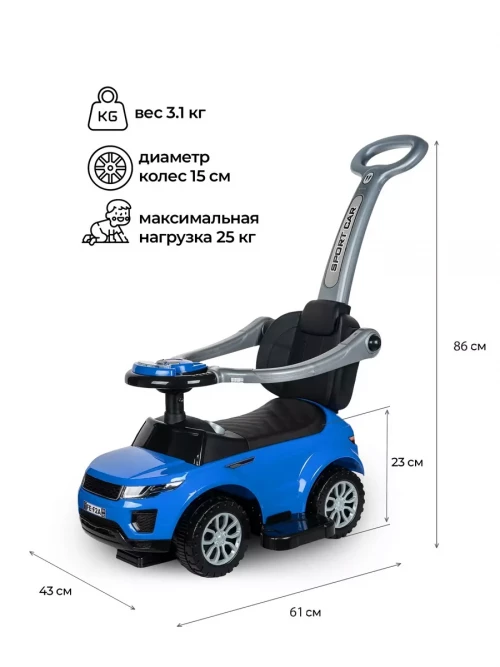 Каталка Sevillababy Sport Car с ручкой blue