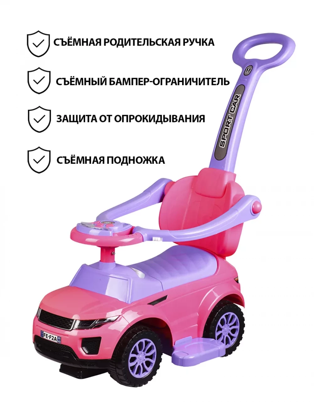 Каталка Sevillababy Sport Car с ручкой pink