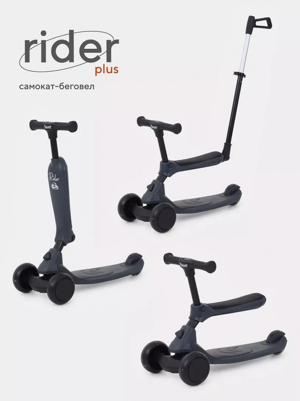 Самокат-Беговел Rant RB100 Rider Plus серый