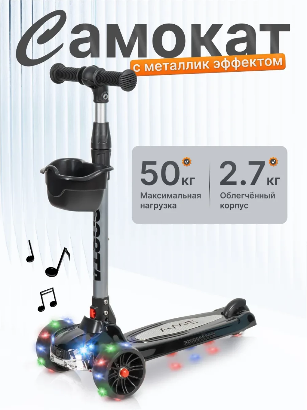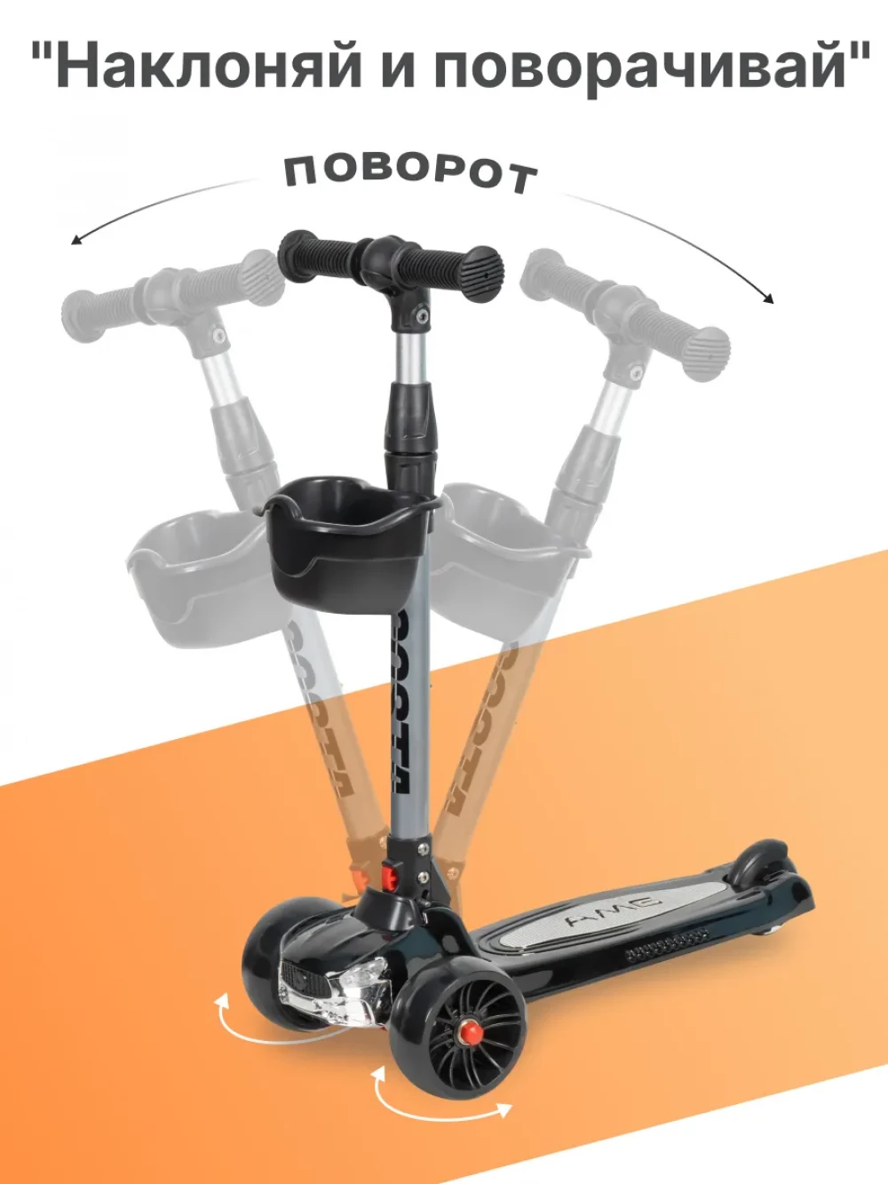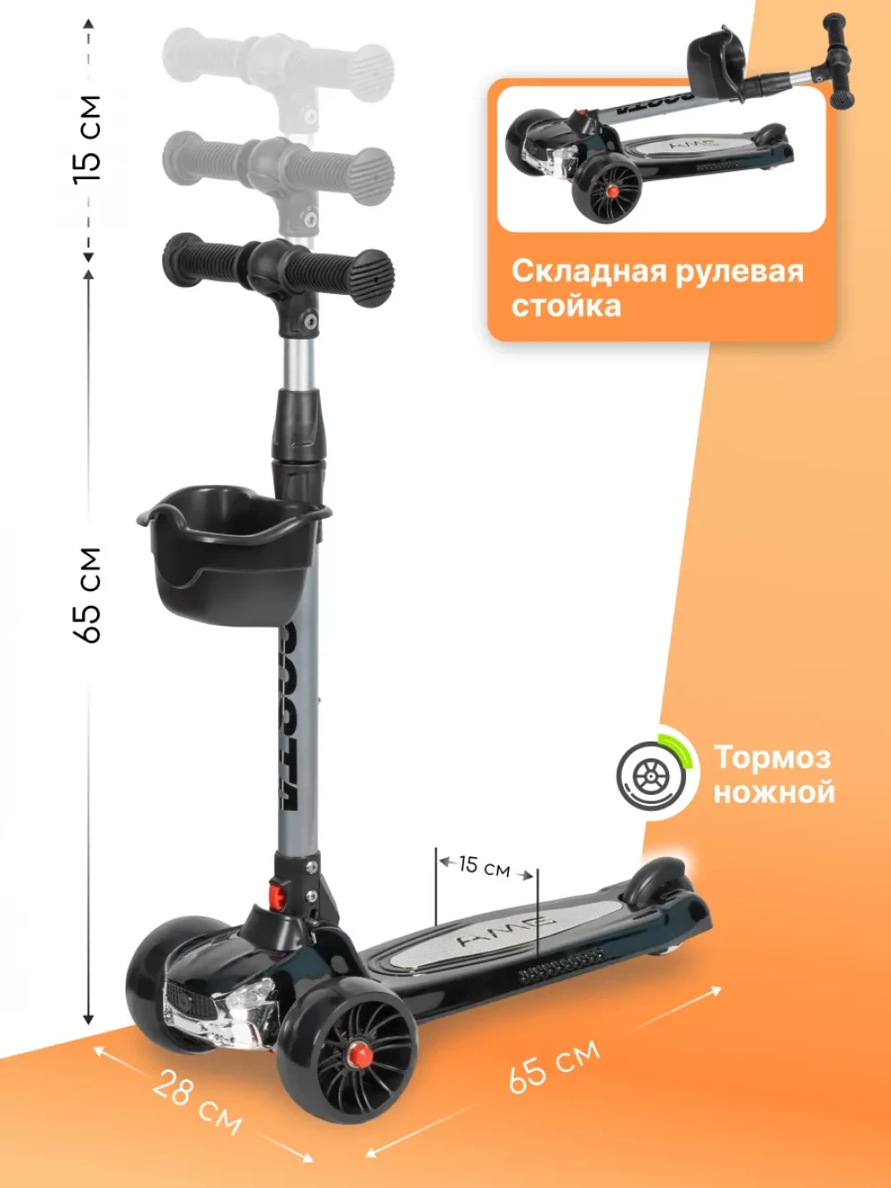 Самокат 3-х колесный Farfello FGF-1254 черный