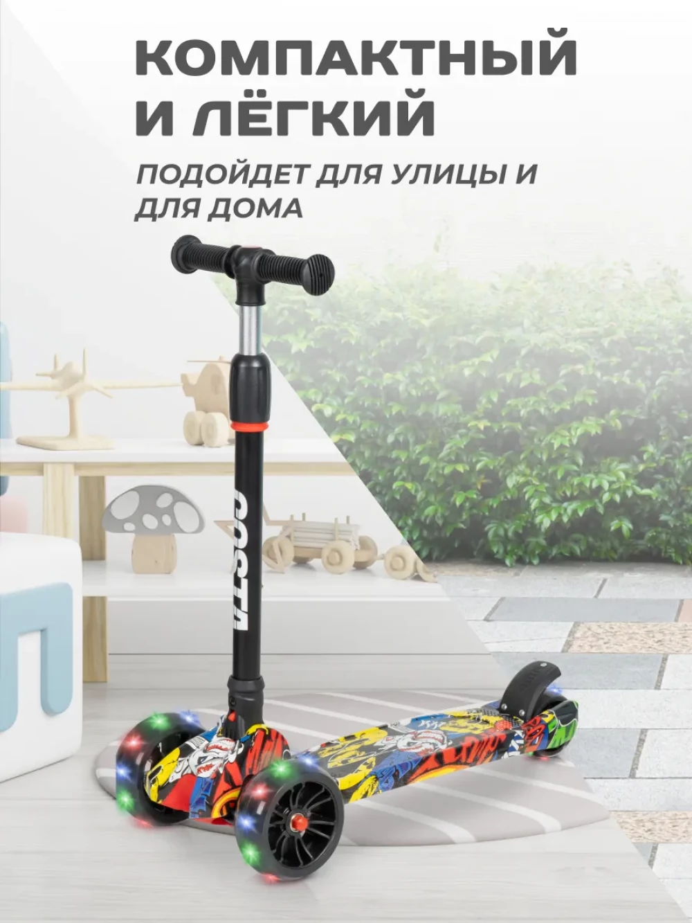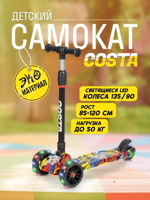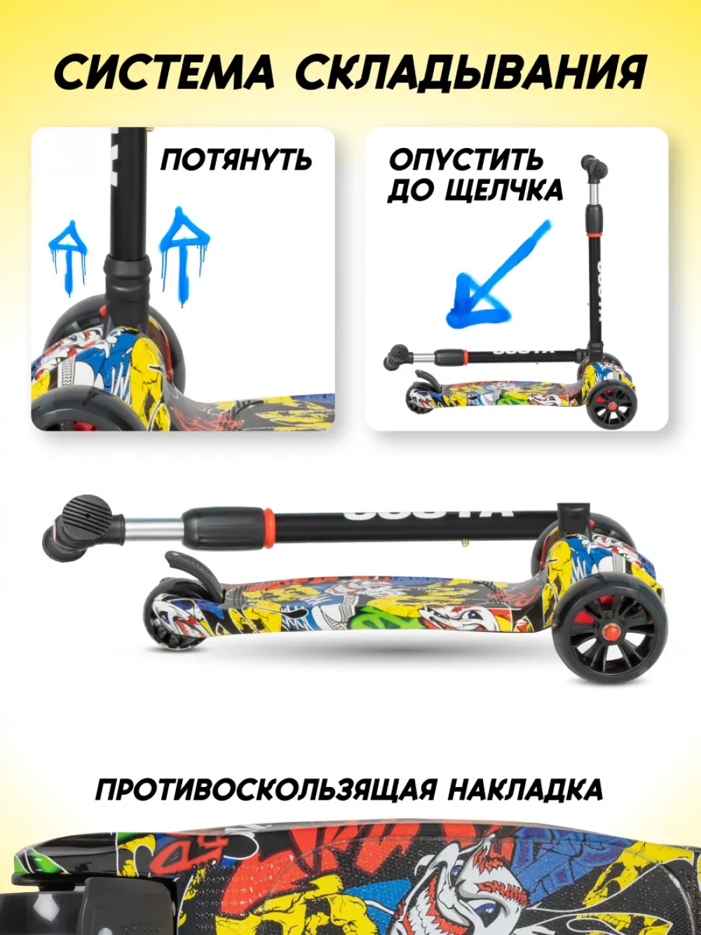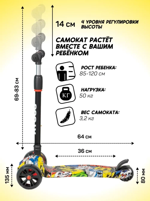 Самокат 3-х колесный Farfello FG-11 Граффити желтый