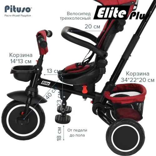 Велоколяска Pituso Elite Plus Red Maroon/Темно-красный
