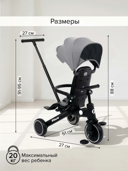 Велоколяска Pituso Leve Pro Grey