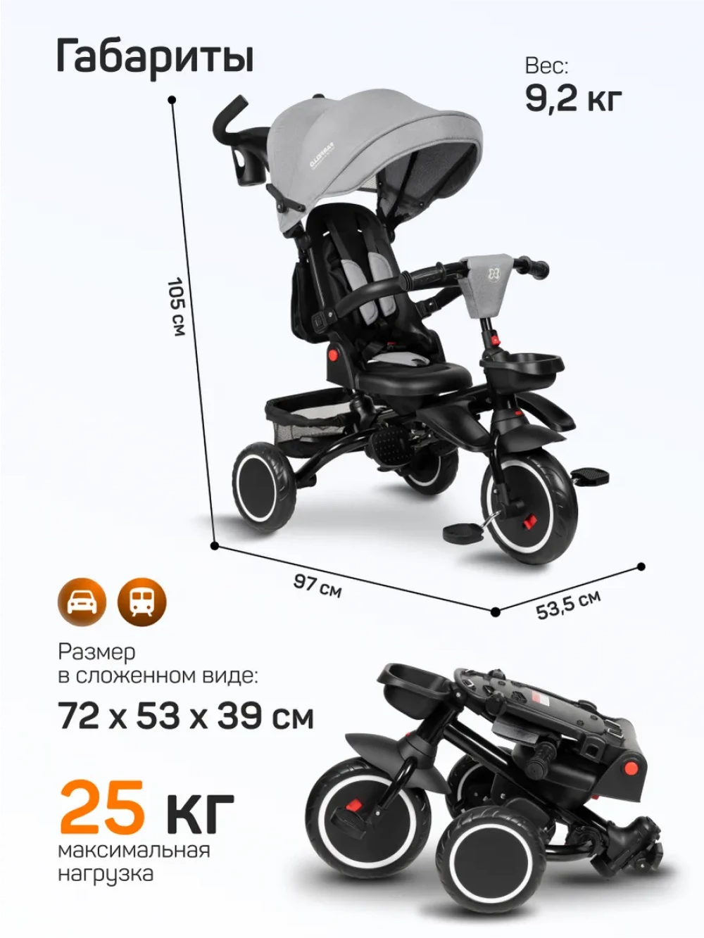 Велоколяска Farfello 6800 серый