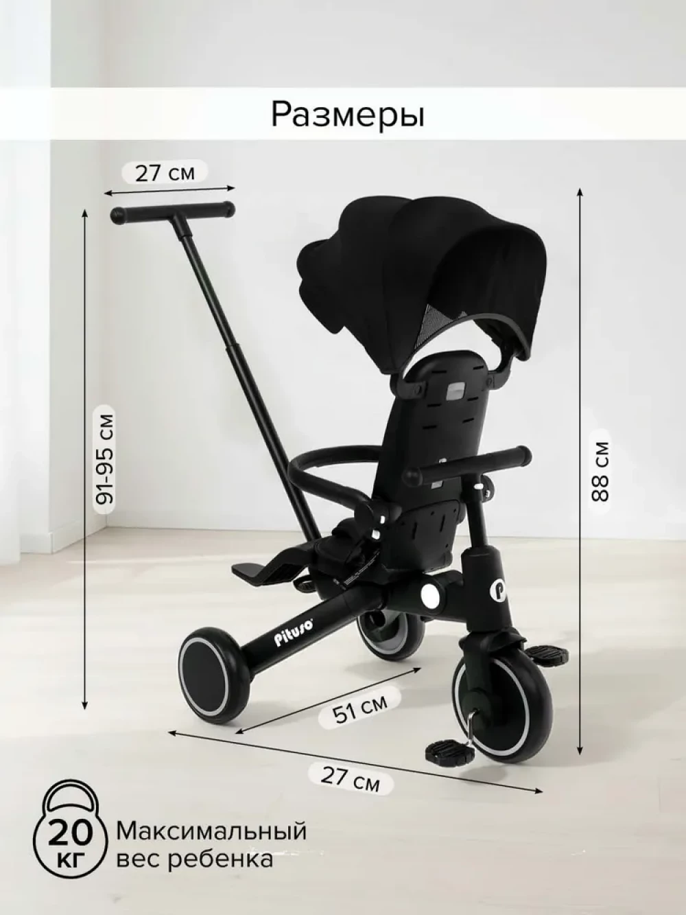Велоколяска Pituso Leve Pro Plus Black