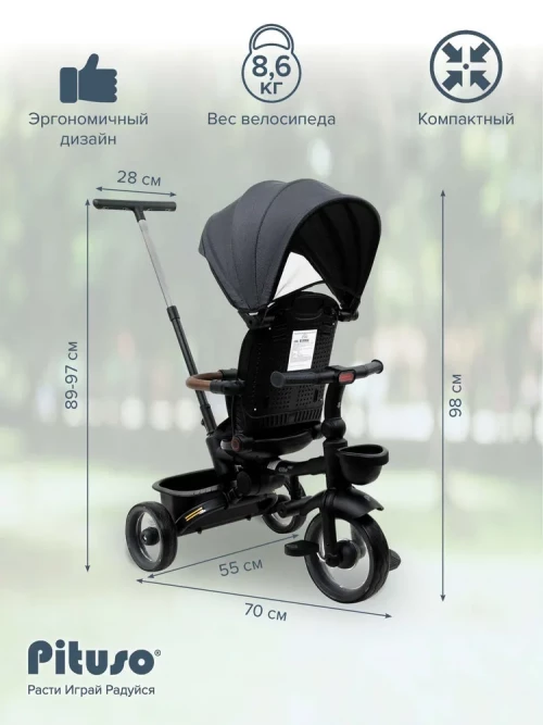 Велоколяска Pituso Elite Pro Grey