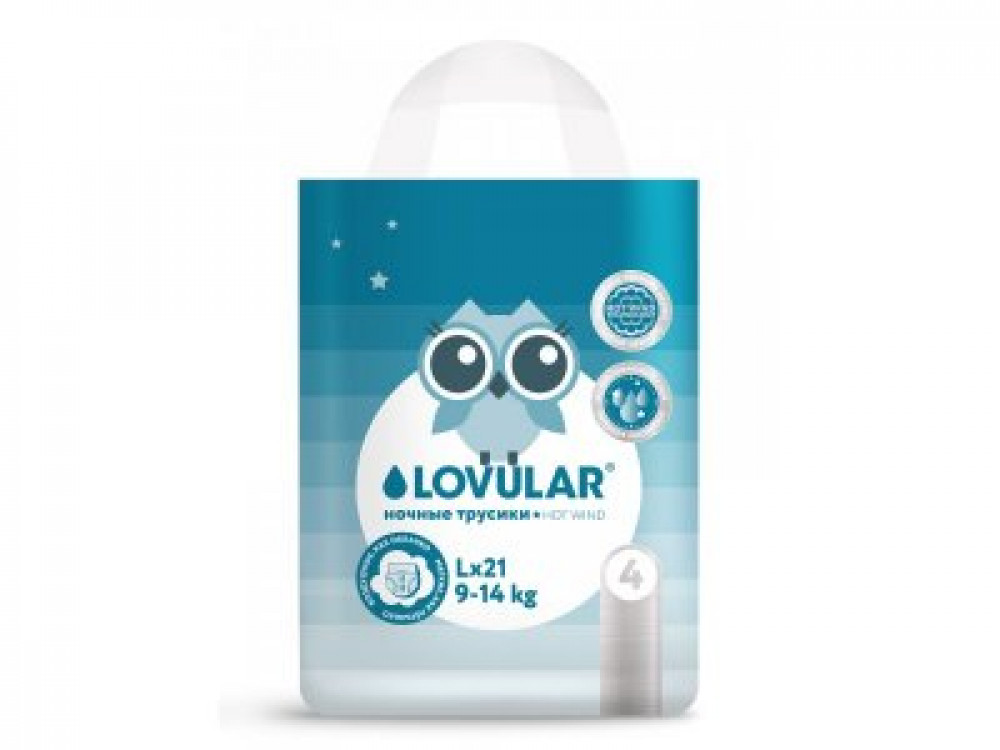 LOVULAR Трусики-подгузники HOT WIND ночные, L, 9-14 кг, 21 шт/уп