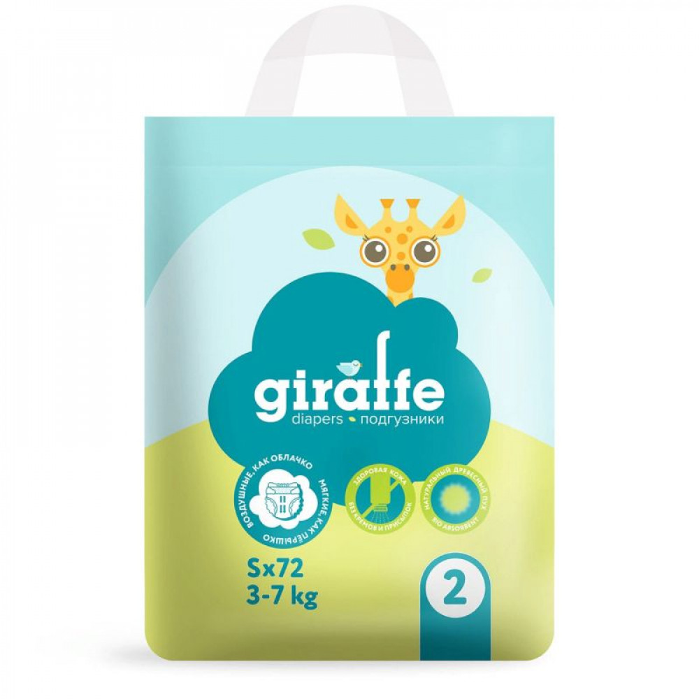 Подгузники LOVULAR GIRAFFE S 3-7кг, 72 шт/уп