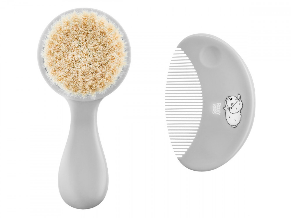 Мягкая расческа-щетка и гребешок "РОКСИ" ворс из овечьей шерсти, серый