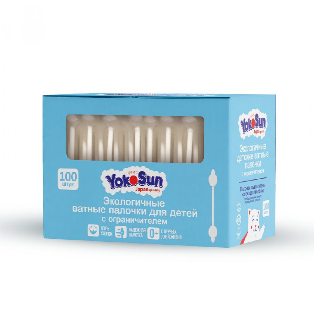 Ватные палочки YokoSun для детей с ограничителем 100 шт/ 10