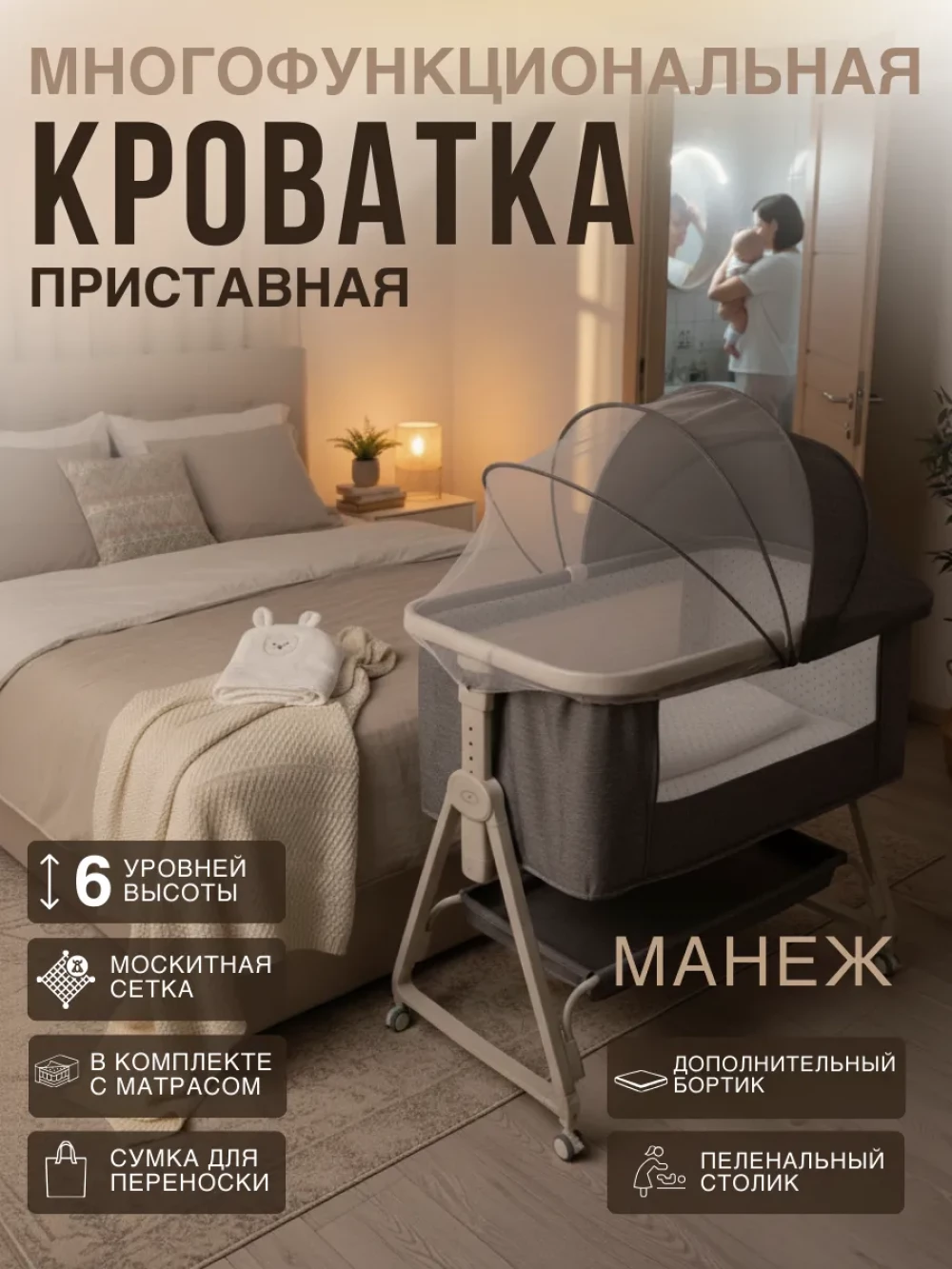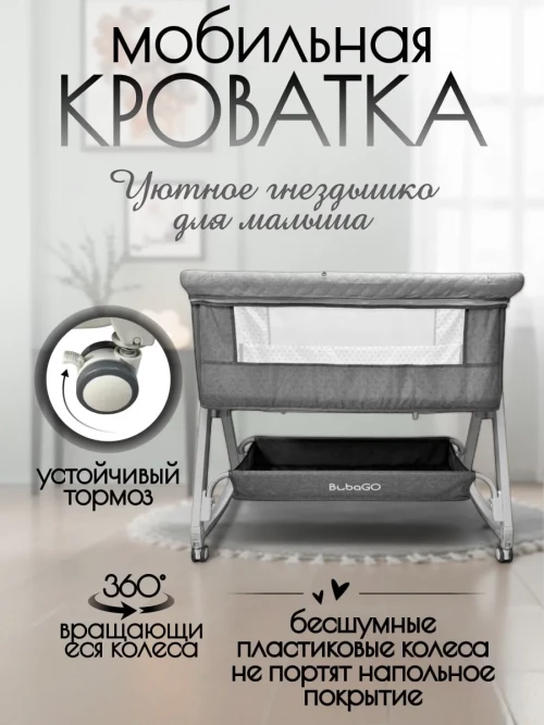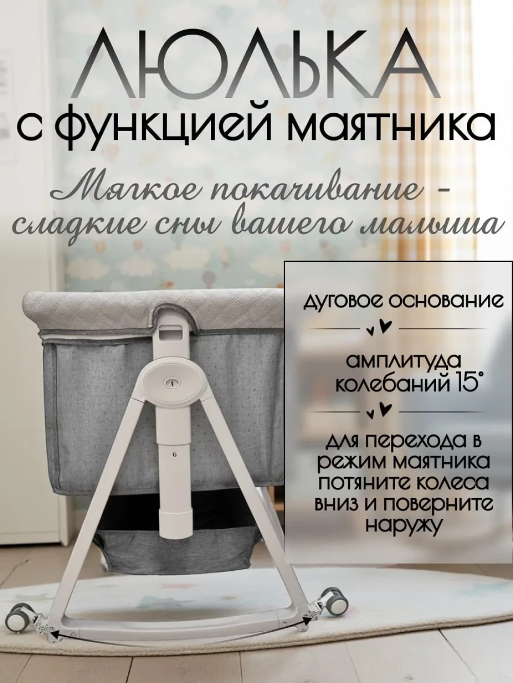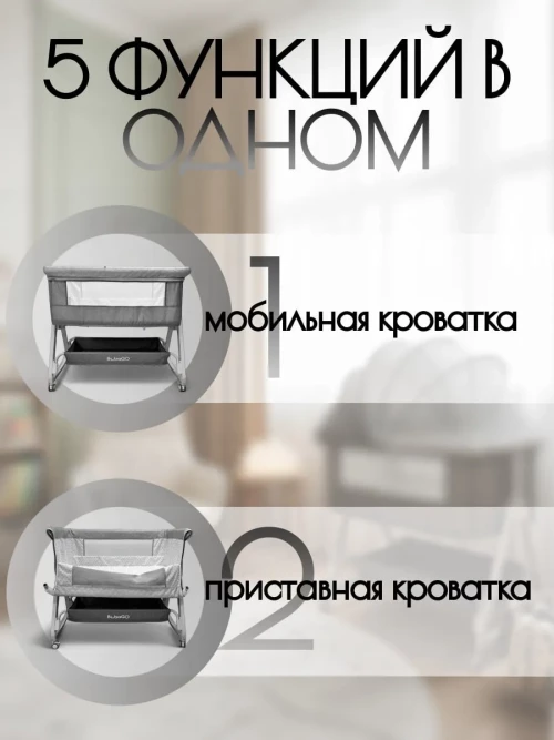 Колыбель-кроватка BubaGo Elva BG 183-1 Серый