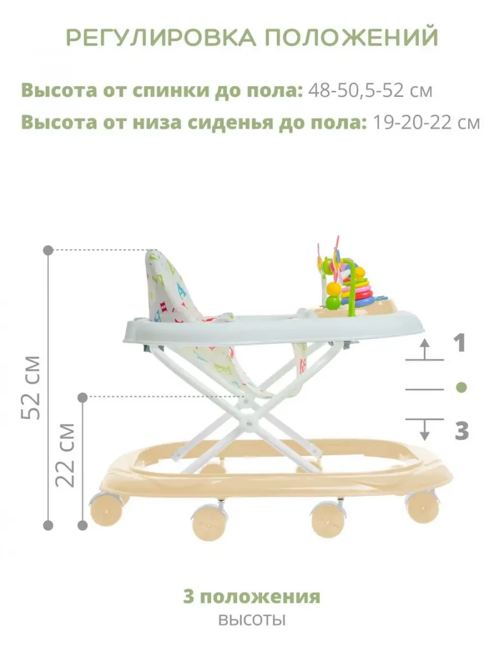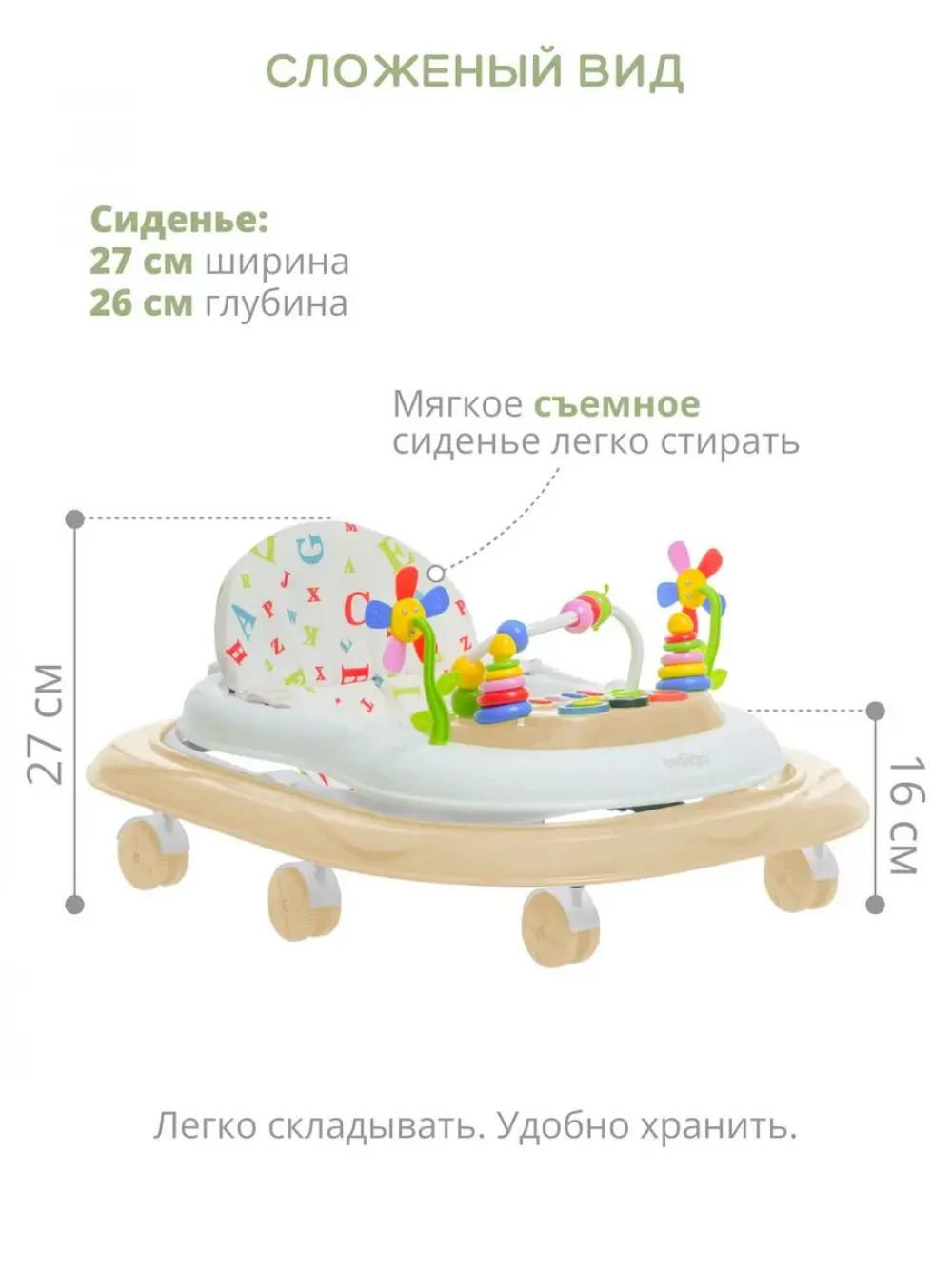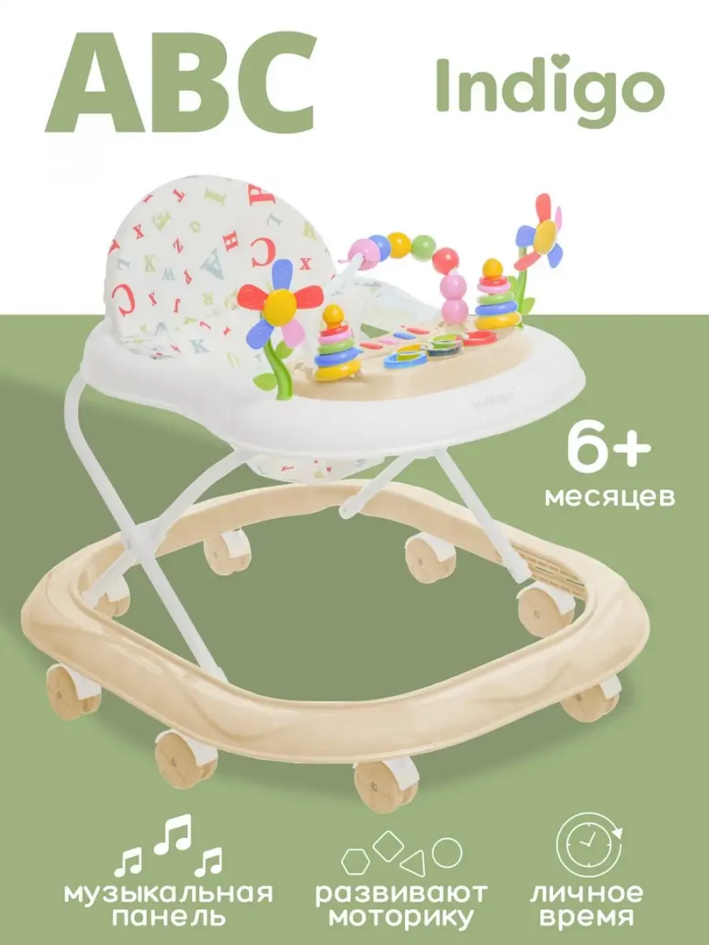 Ходунки Indigo ABC C бежевый-белый