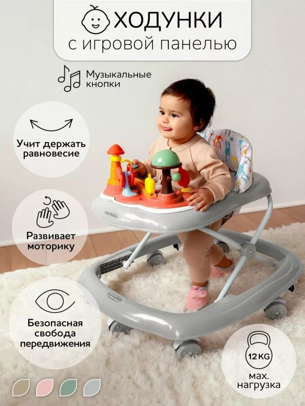Ходунки Amarobaby Running Baby серый