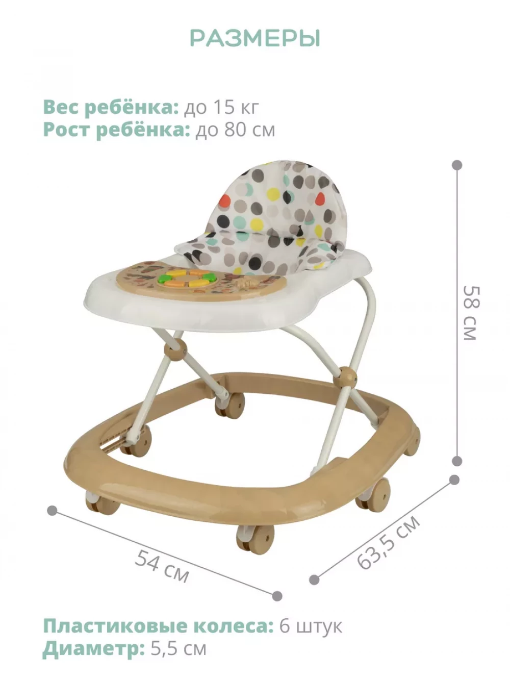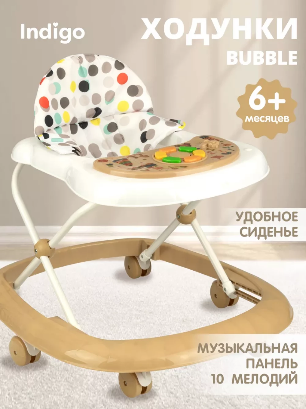 Ходунки Indigo Bubble бежевый-белый