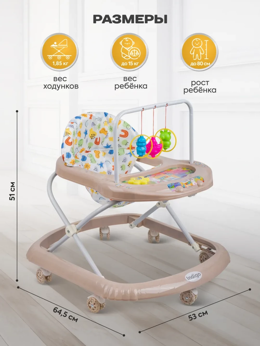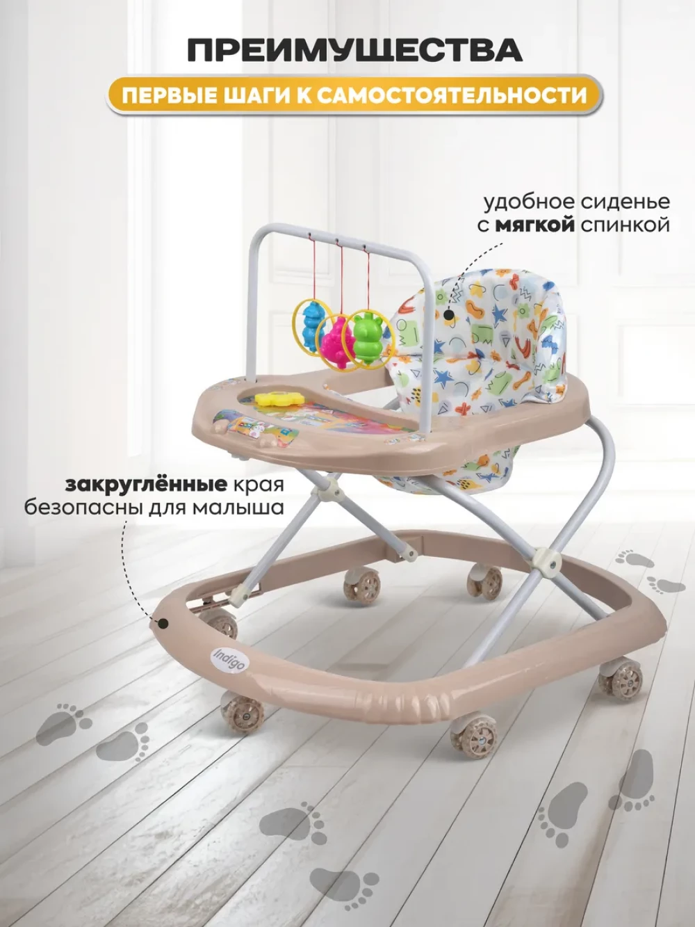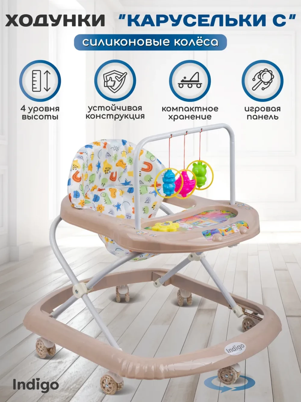 Ходунки Indigo Карусельки C 7 бежевый