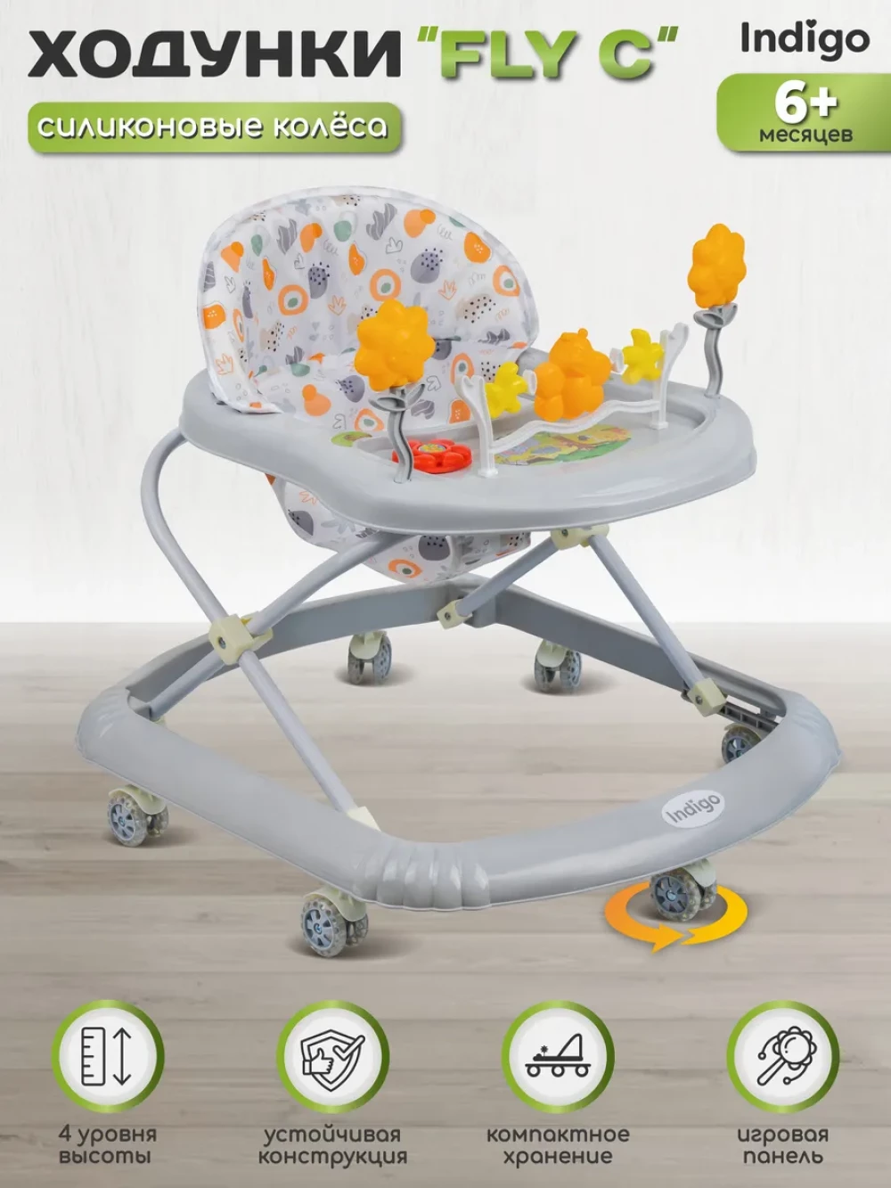 Ходунки Indigo Fly C серый