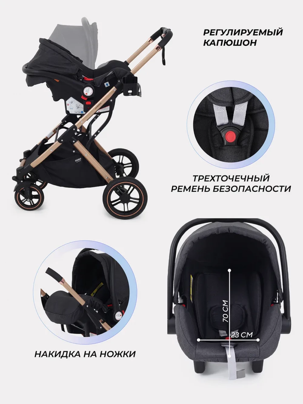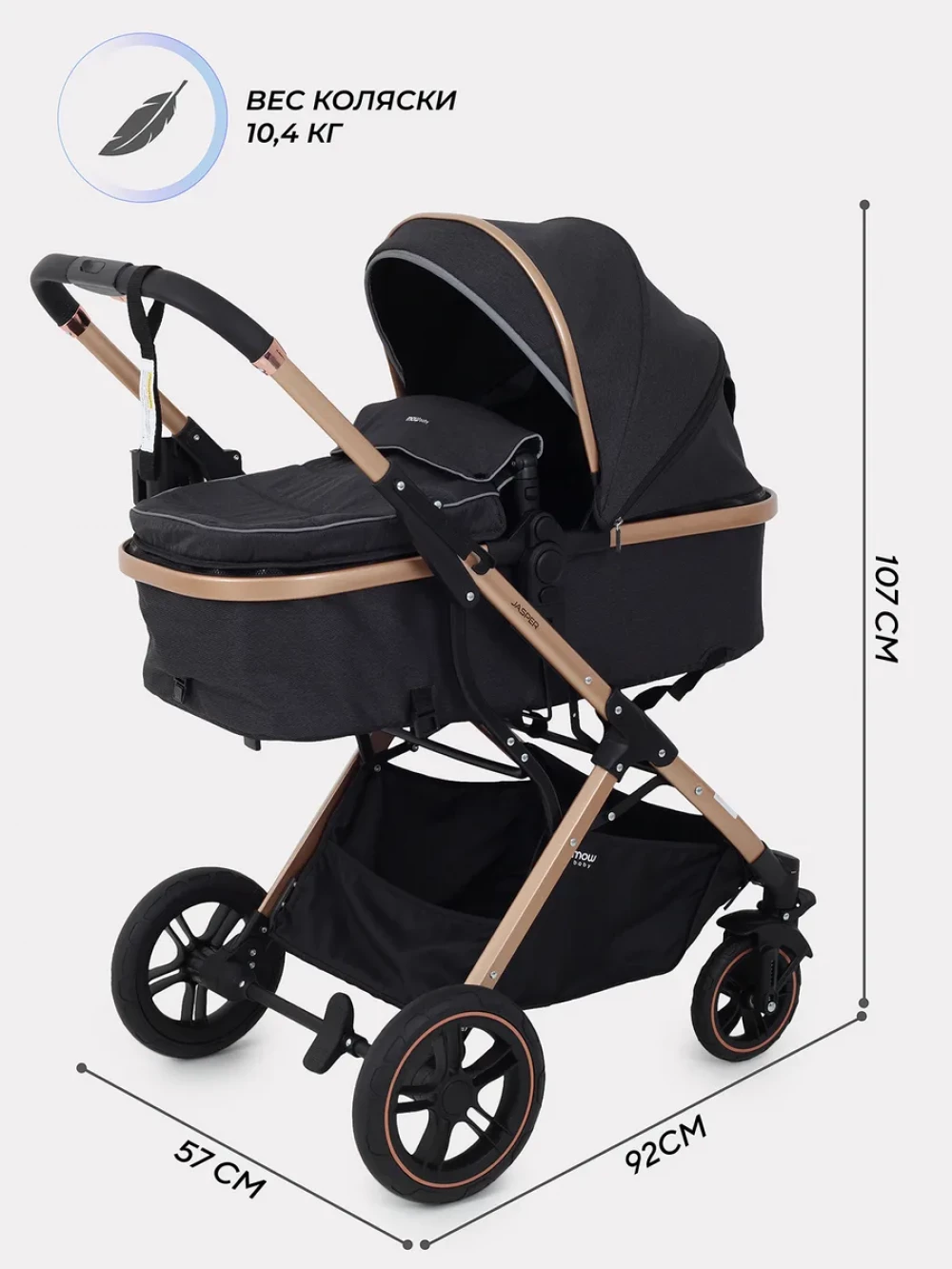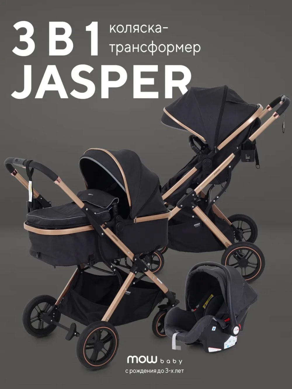 Коляска-трансформер MOWBaby Jasper MB022 3 в 1 Gold Black