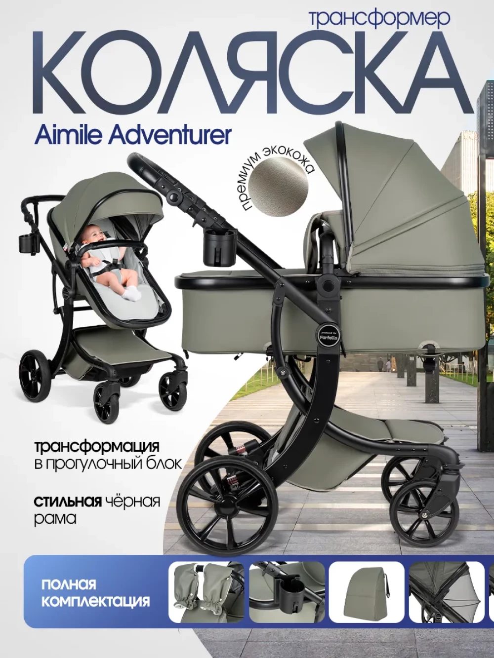 Коляска-трансформер Farfello Aimile Adventurer 2 в 1 Olive