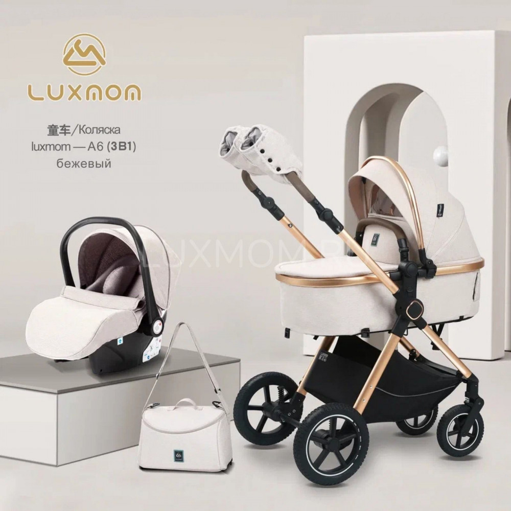 Коляска-трансформер Luxmom A6 3 в 1 бежевый