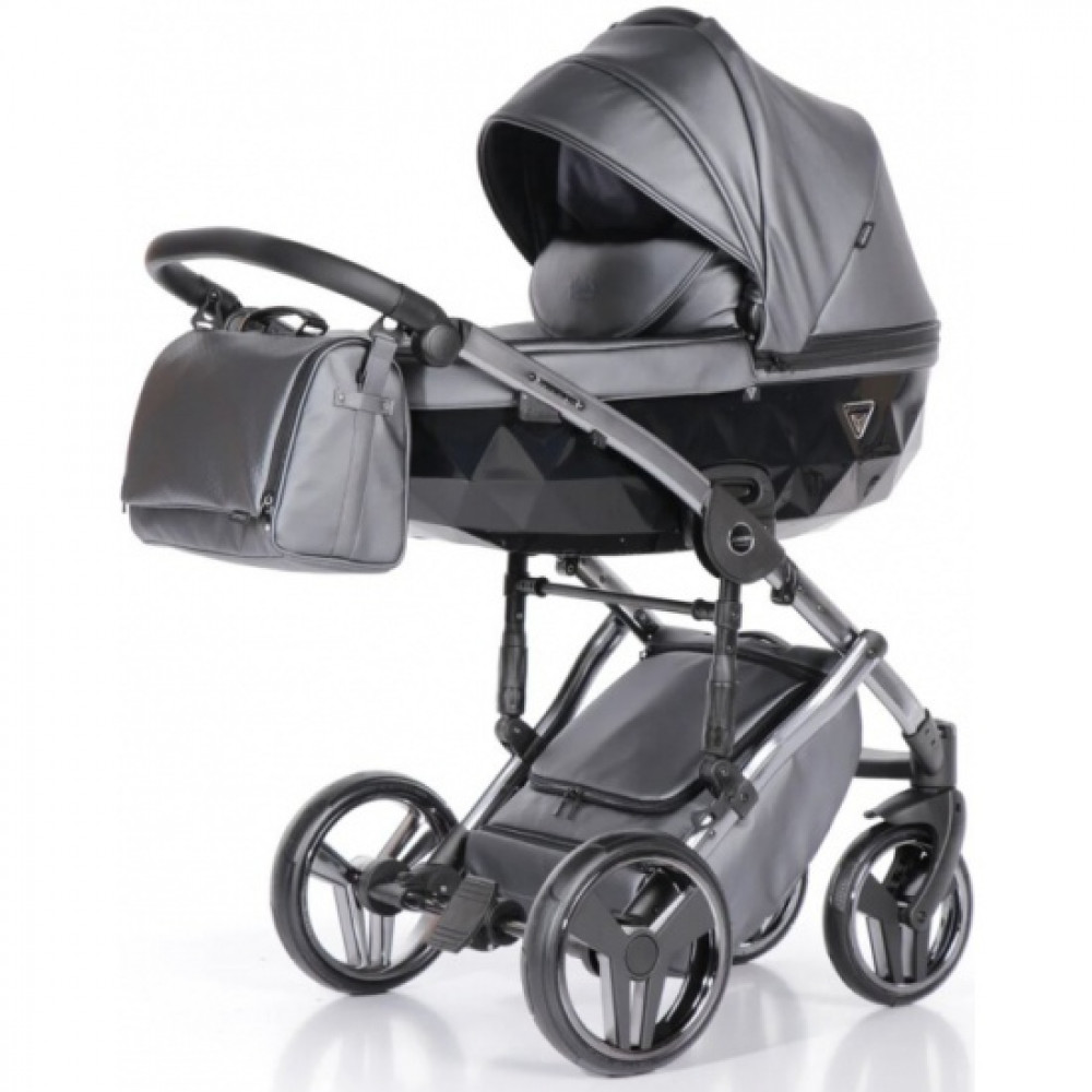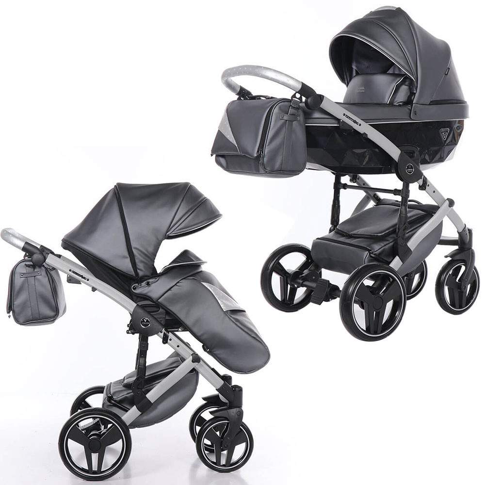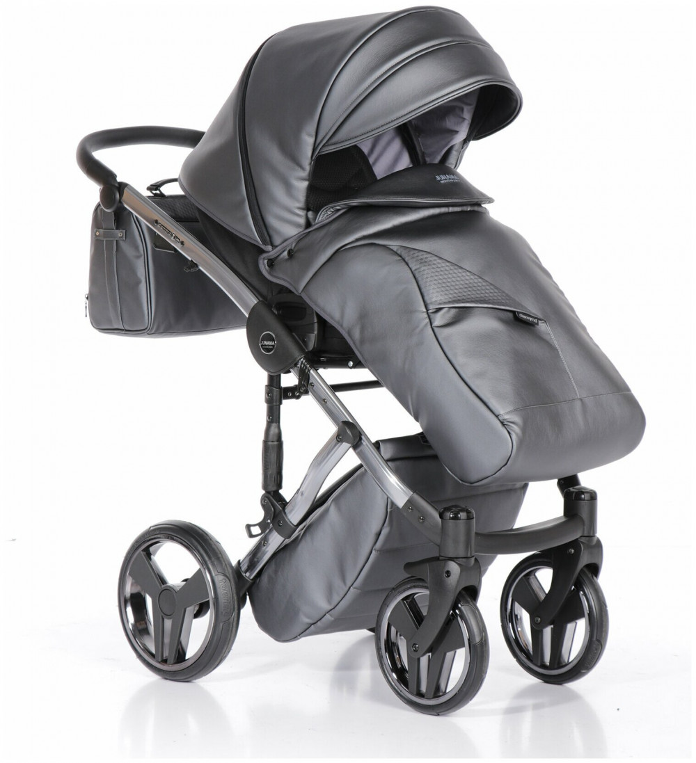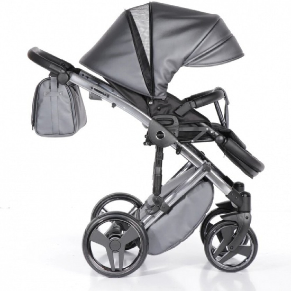 Коляска 2 в 1 JUNAMA FLUO LINE JDFL-05 (кожа серый/короб черный/рама серебро)