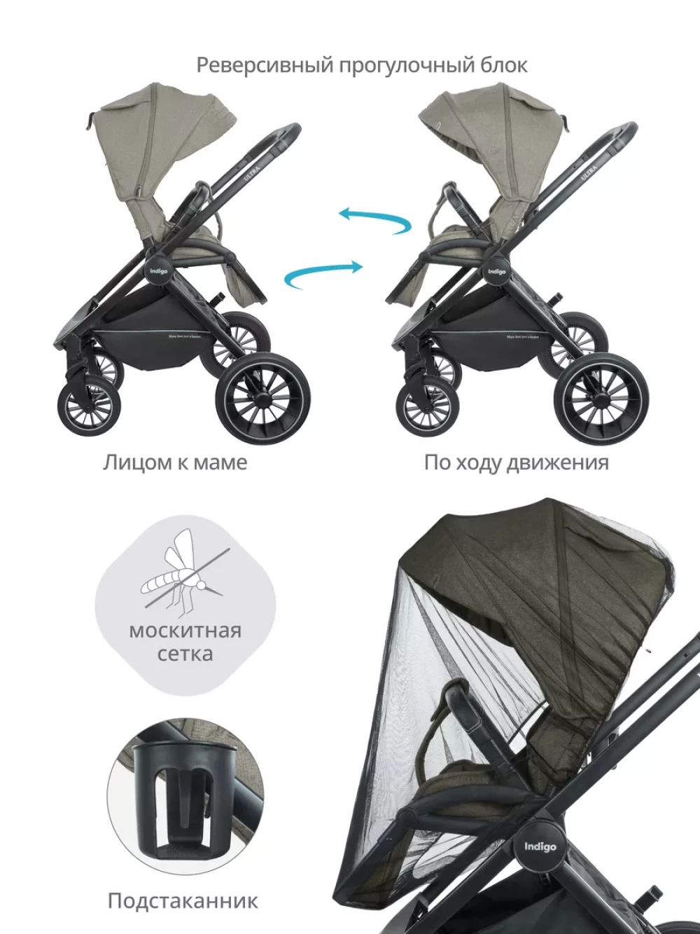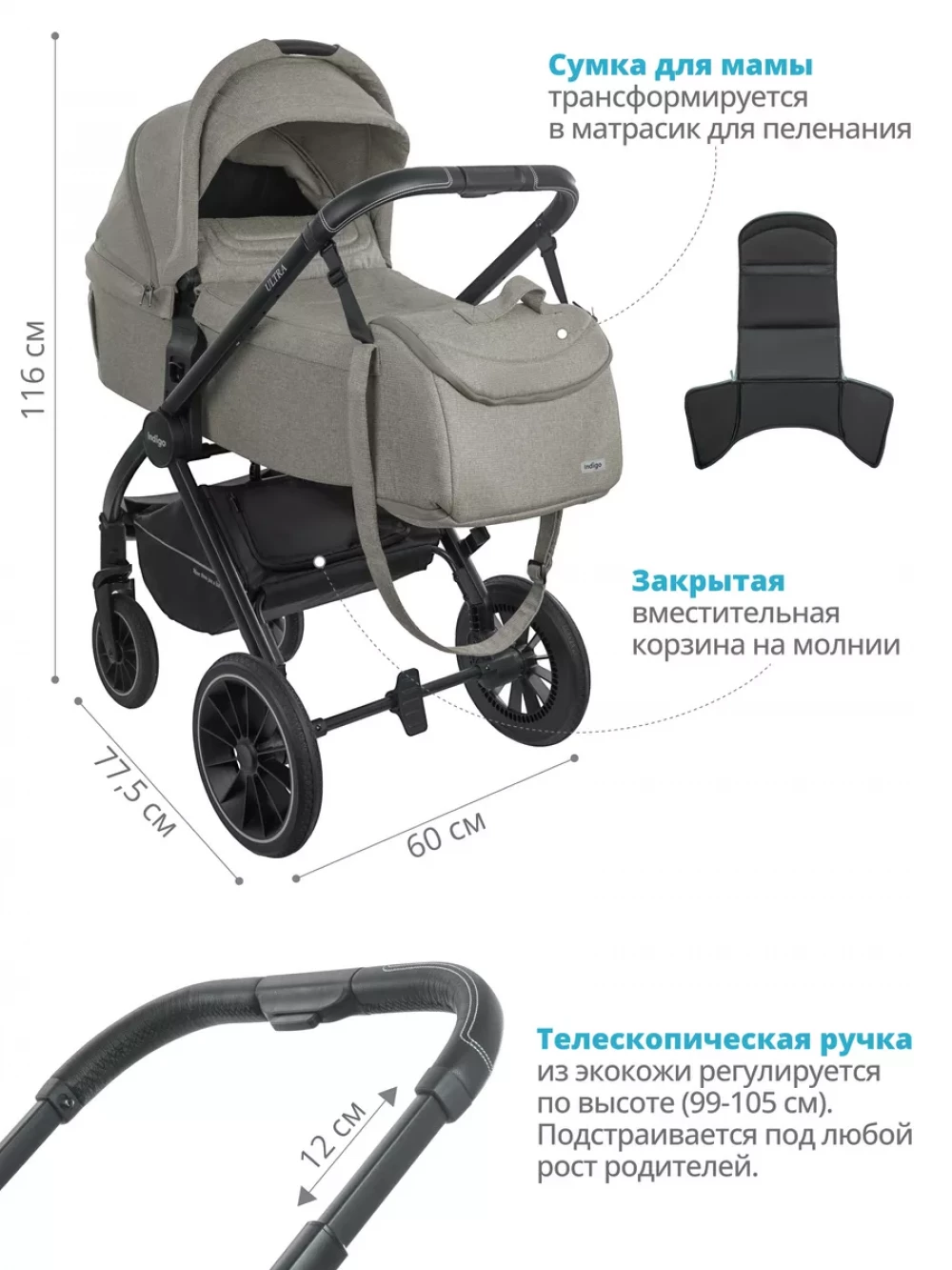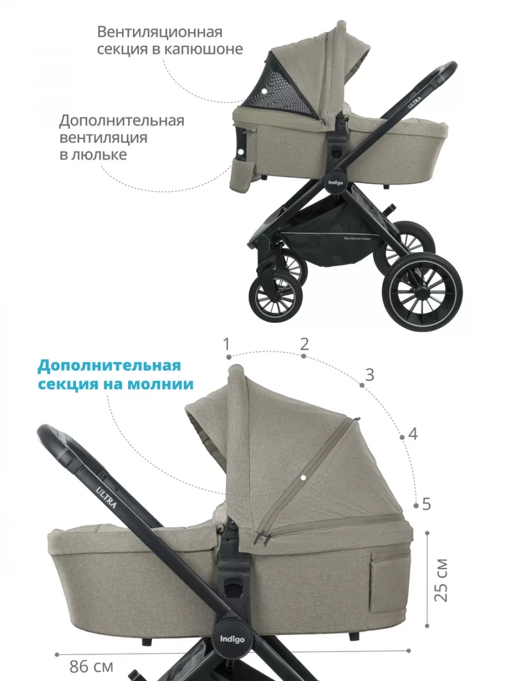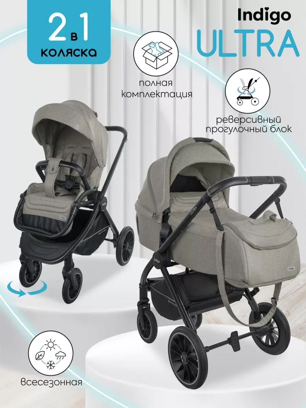 Коляска 2 в 1 Indigo Ultra бежевый