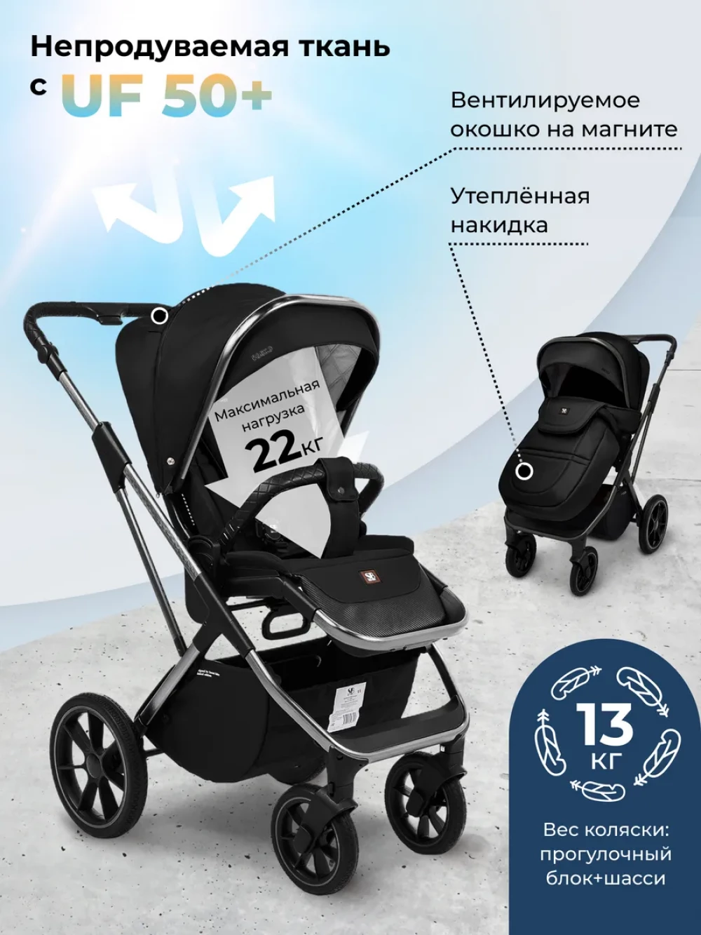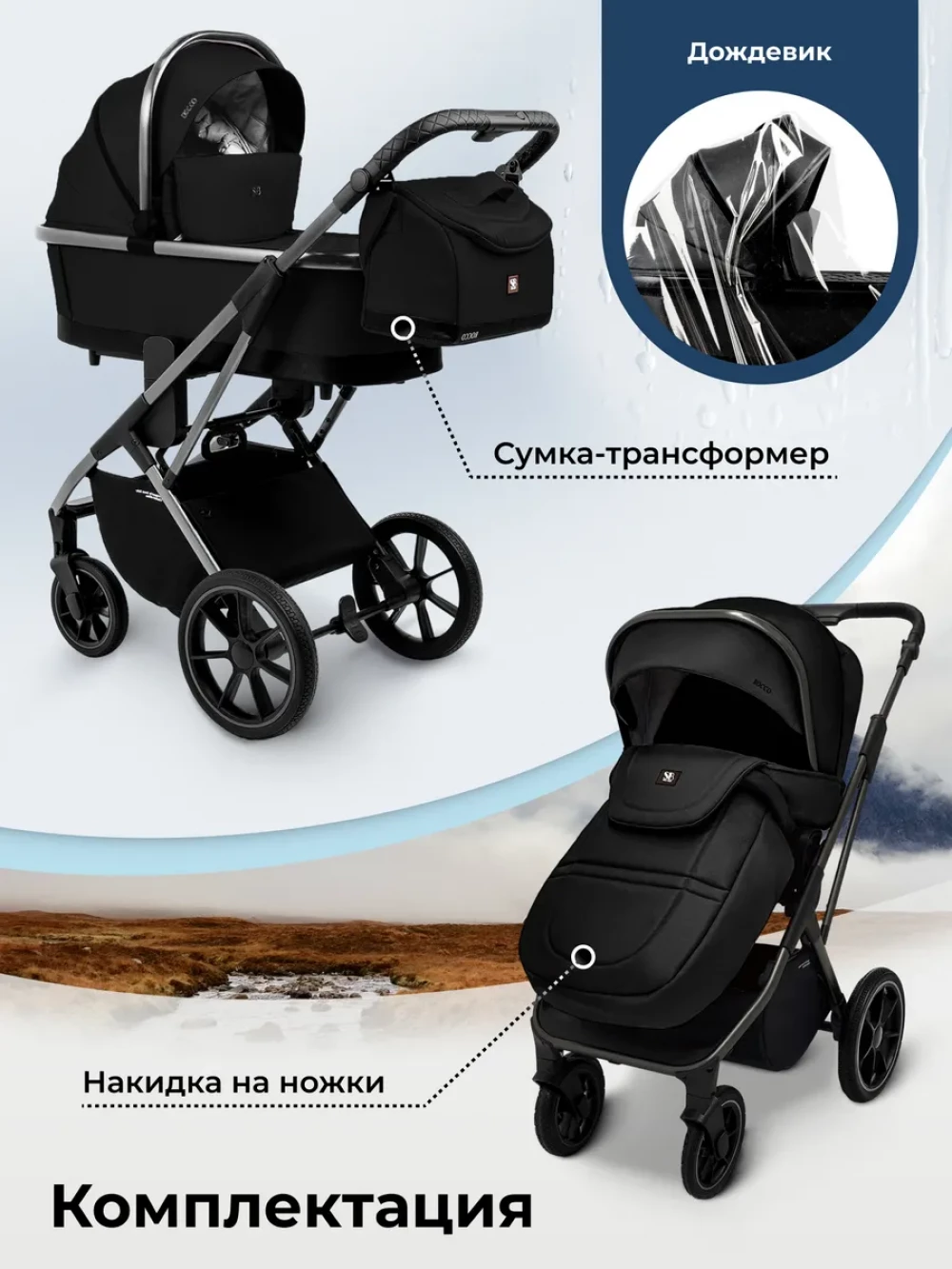 Коляска 2 в 1 Sweet Baby Rocco Black