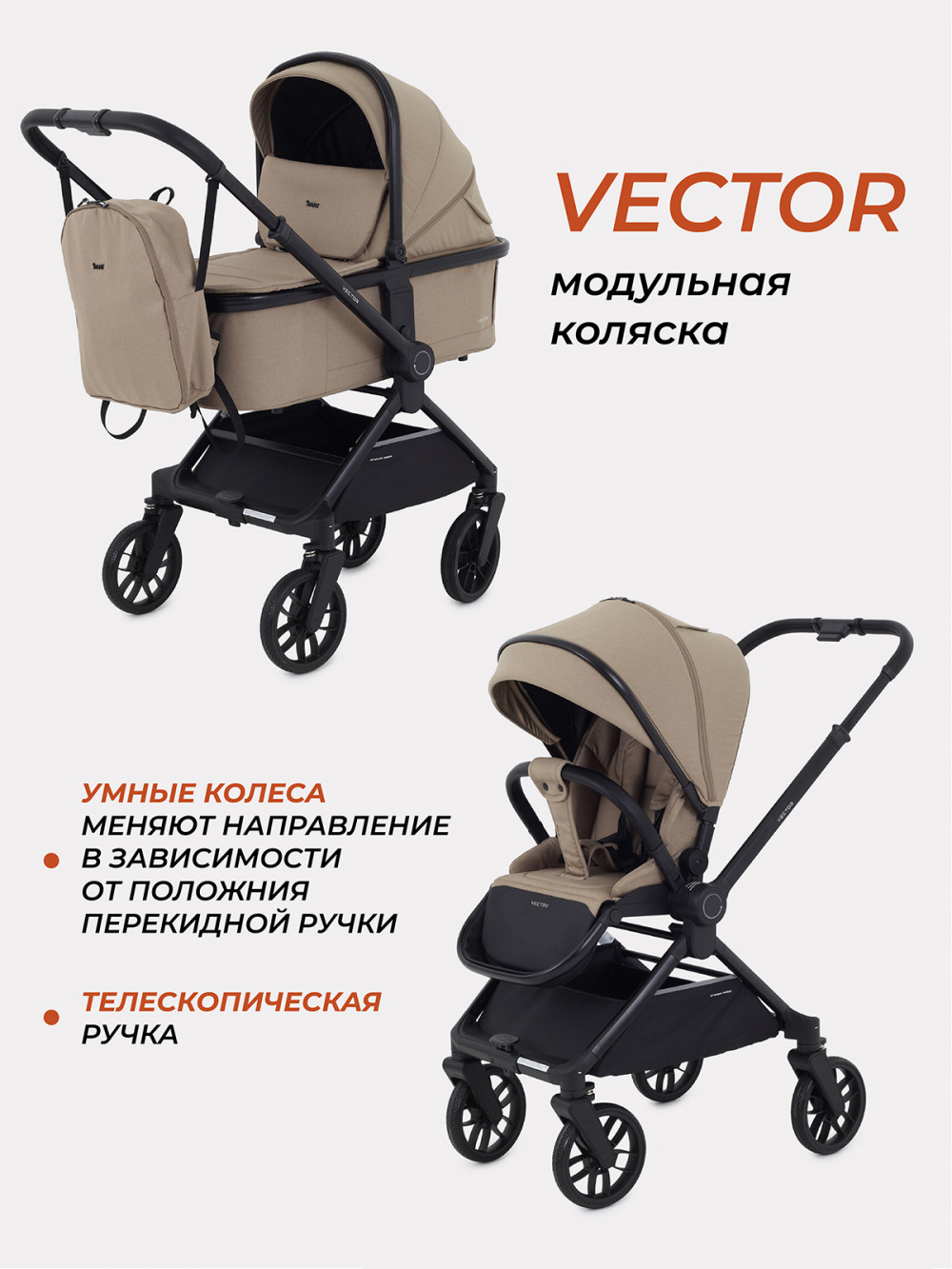 Коляска 2 в 1 Rant Vector RA322 Latte