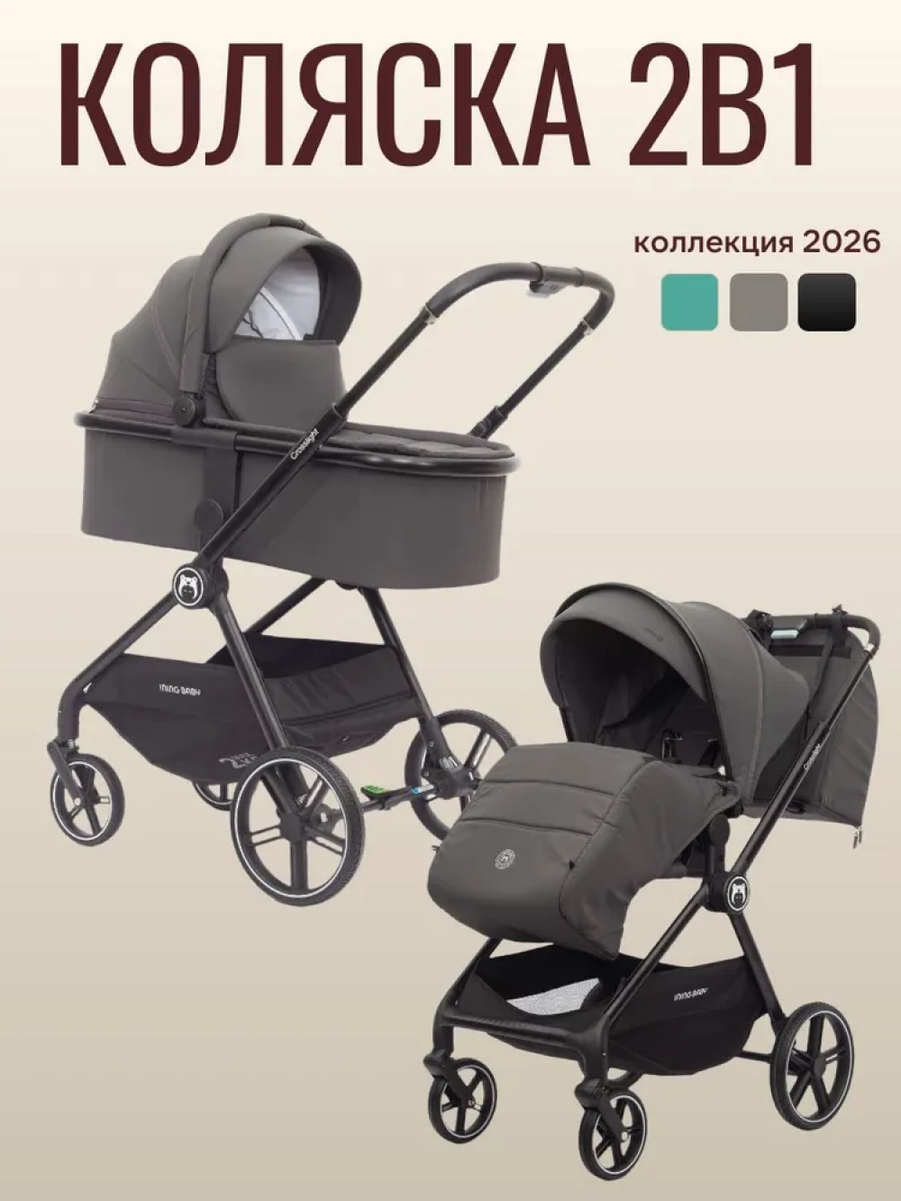 Коляска 2 в 1 Ining Baby Z1-X PRO dark grey
