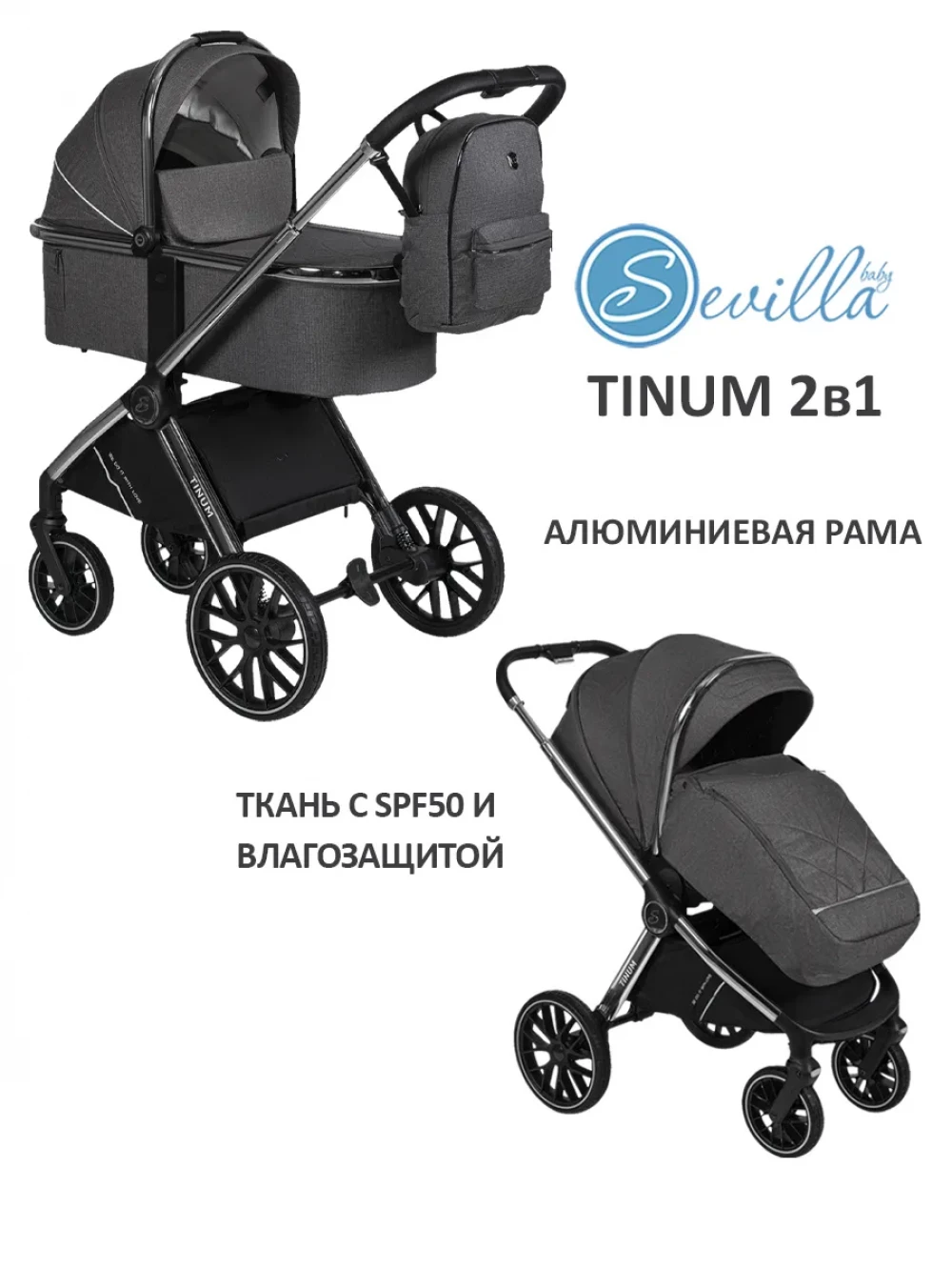 Коляска 2 в 1 Sevillababy Tinum Dk.Grey