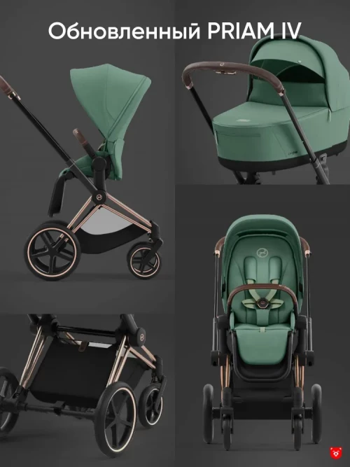 Коляска 2 в 1 Cybex Priam IV Rosegold Leaf Green
