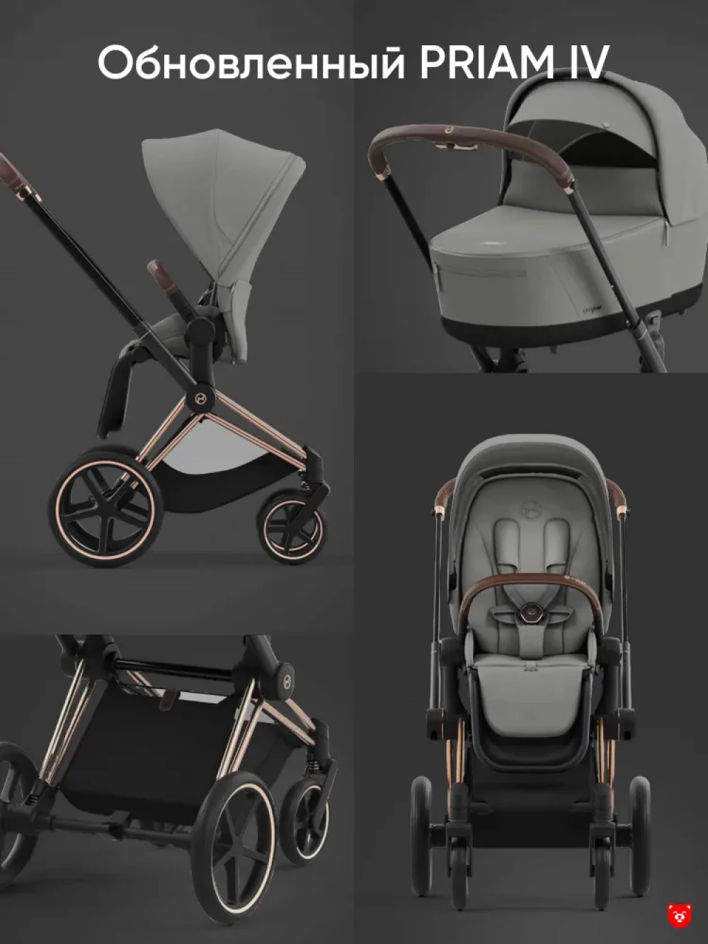 Коляска 2 в 1 Cybex Priam IV Rosegold Mirage Grey