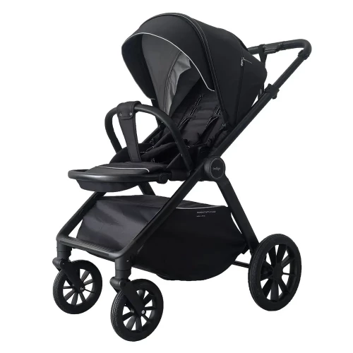 Коляска оснащена полиуретановыми колесами диаметром 20 и 29 см, амортизацией передних и задних колес, центральным тормозом и поворотными передними колесами с фиксацией. Закрытая корзина на молнии повышает практичность модели в ежедневной эксплуатации.