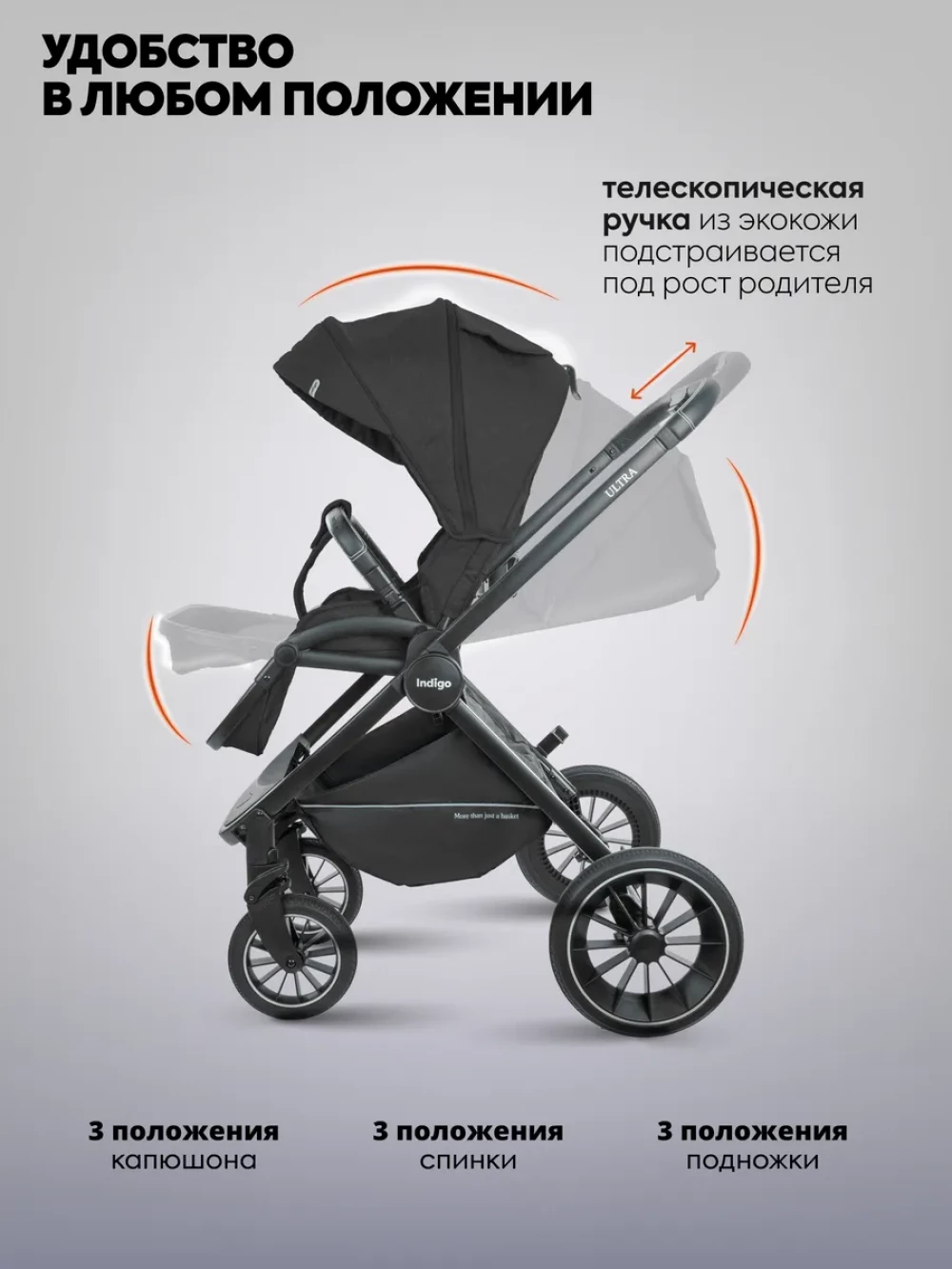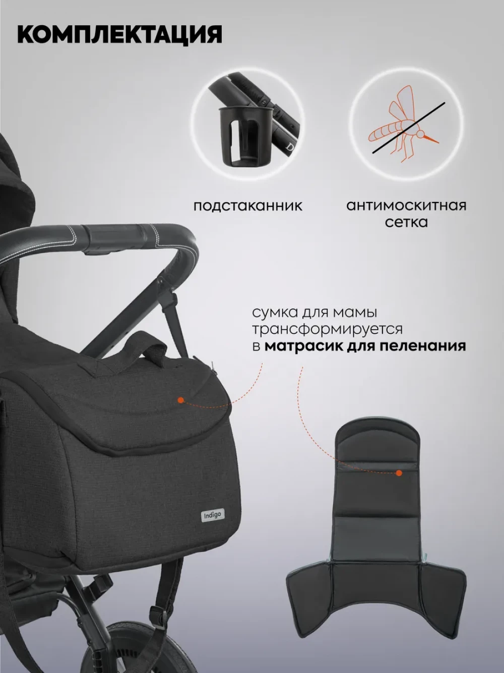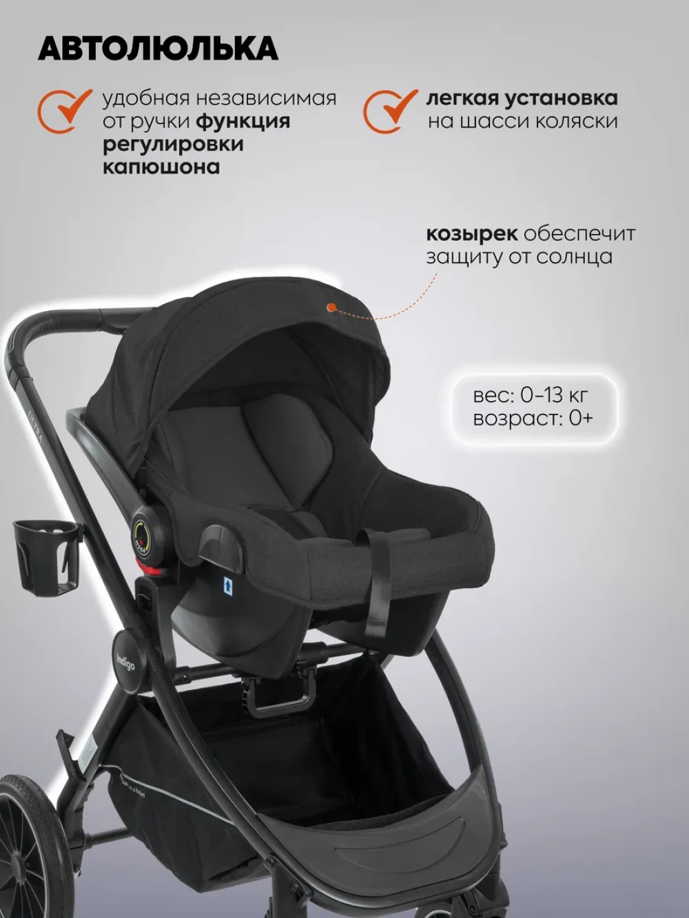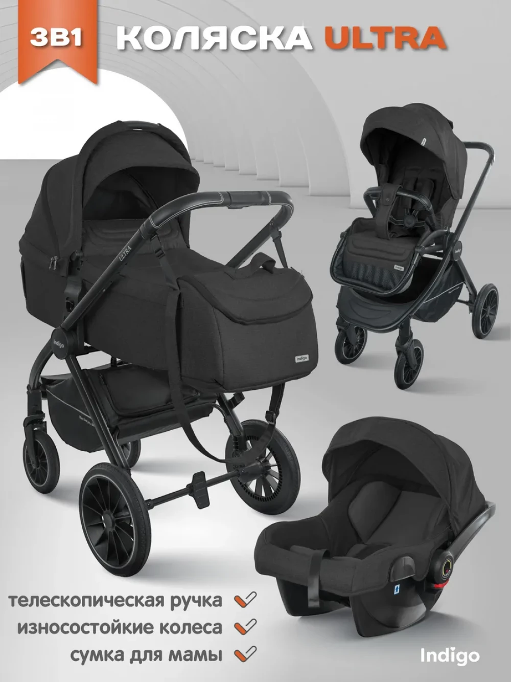 Коляска 3 в 1 Indigo Ultra черный