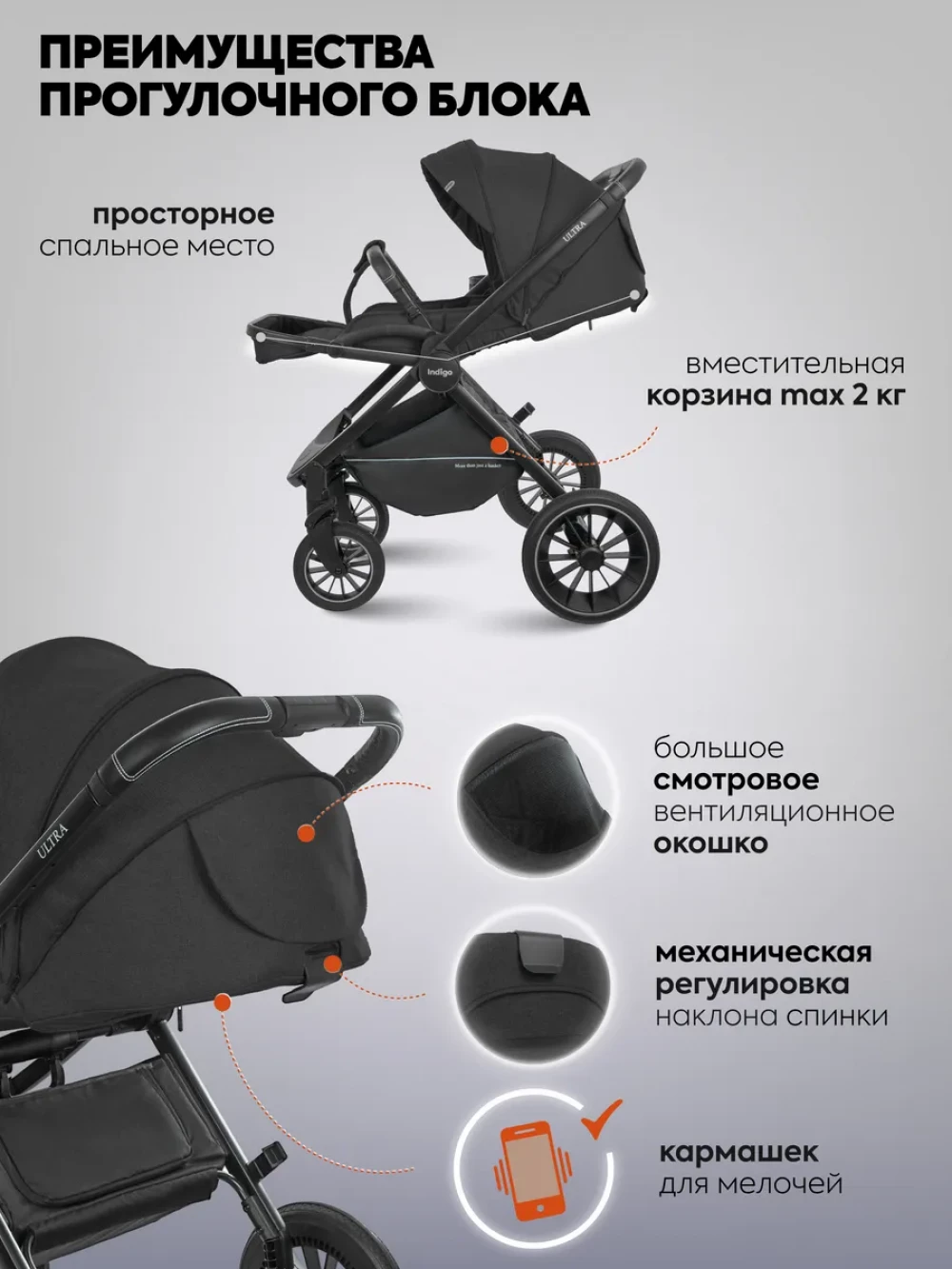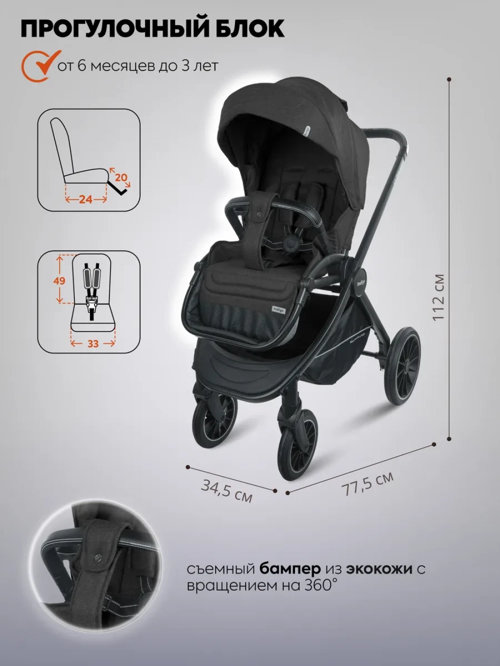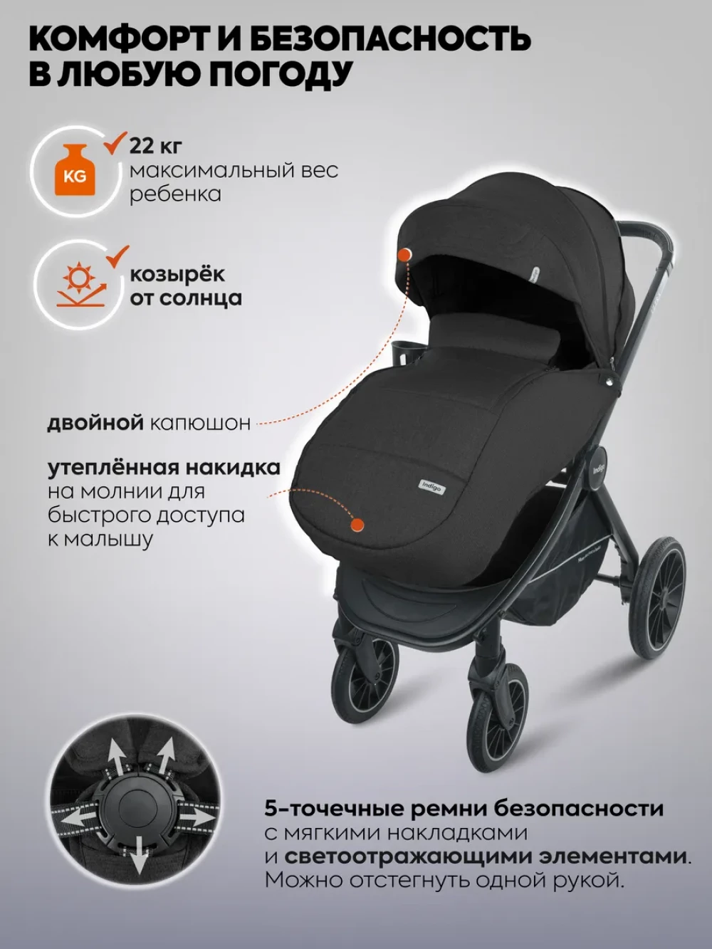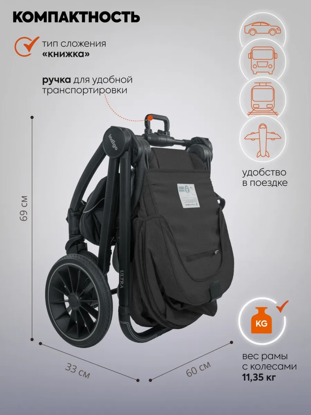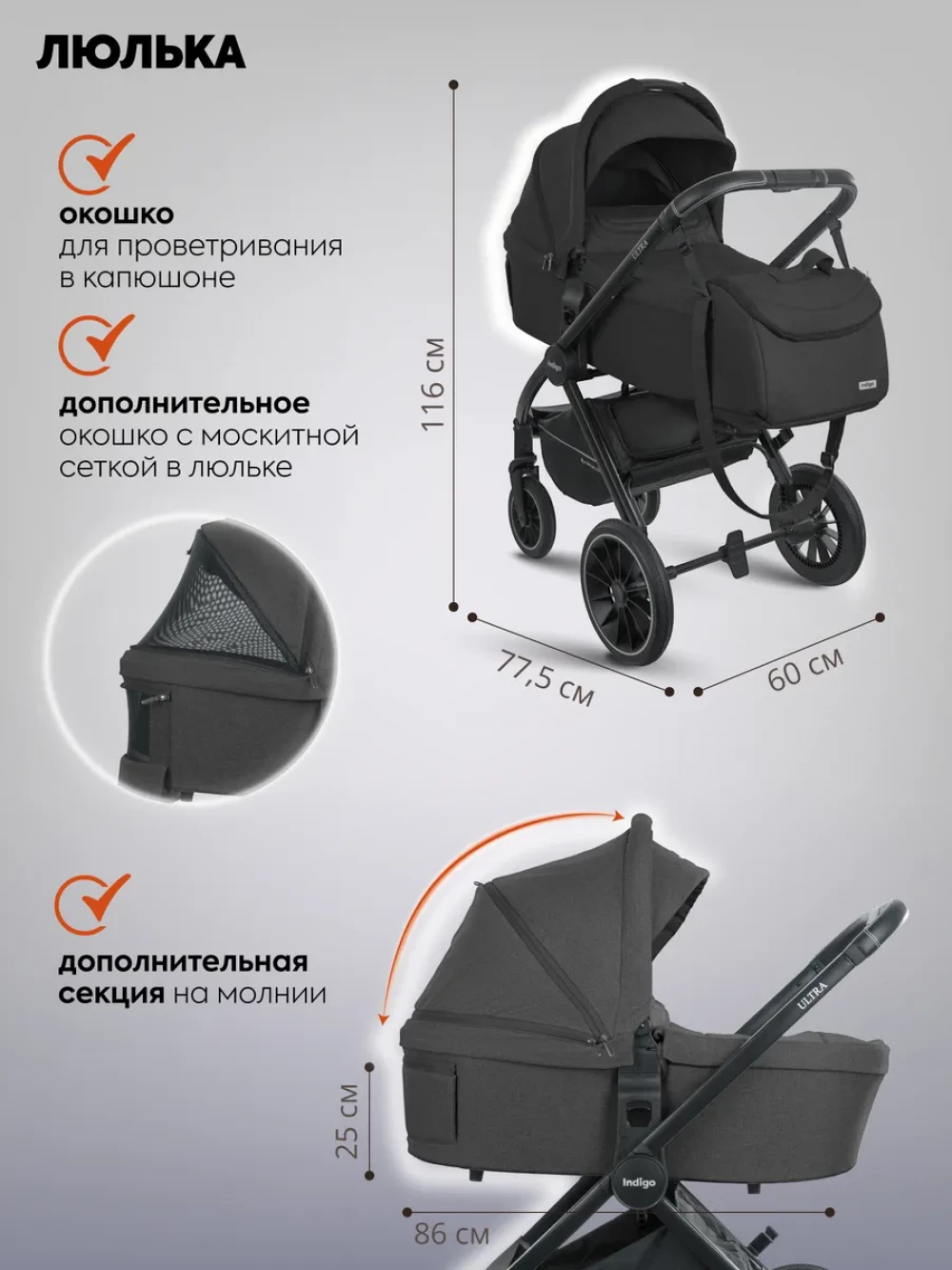 Коляска 3 в 1 Indigo Ultra черный
