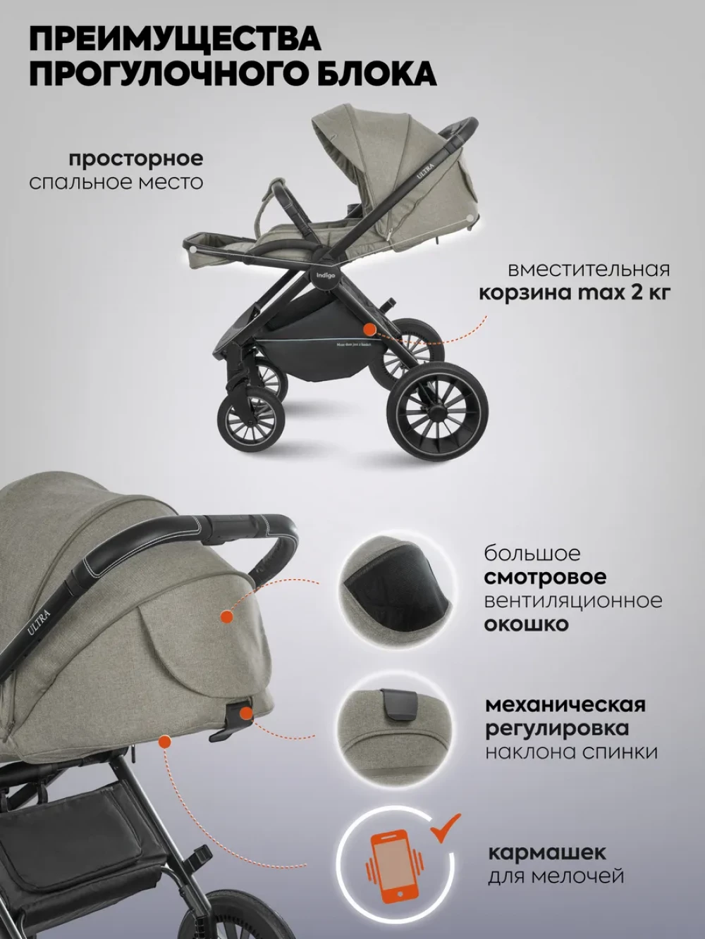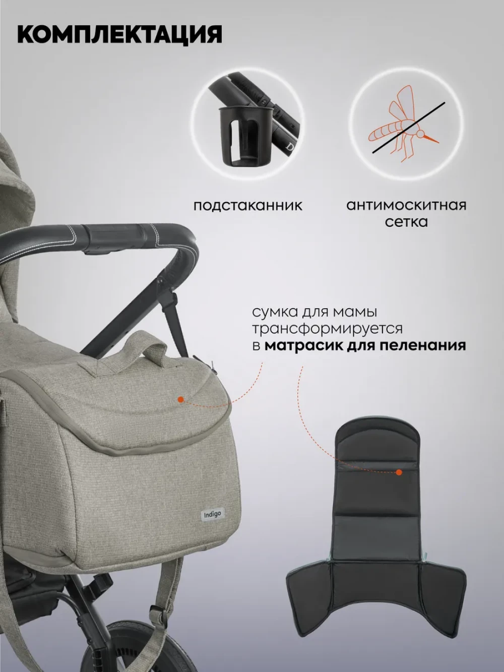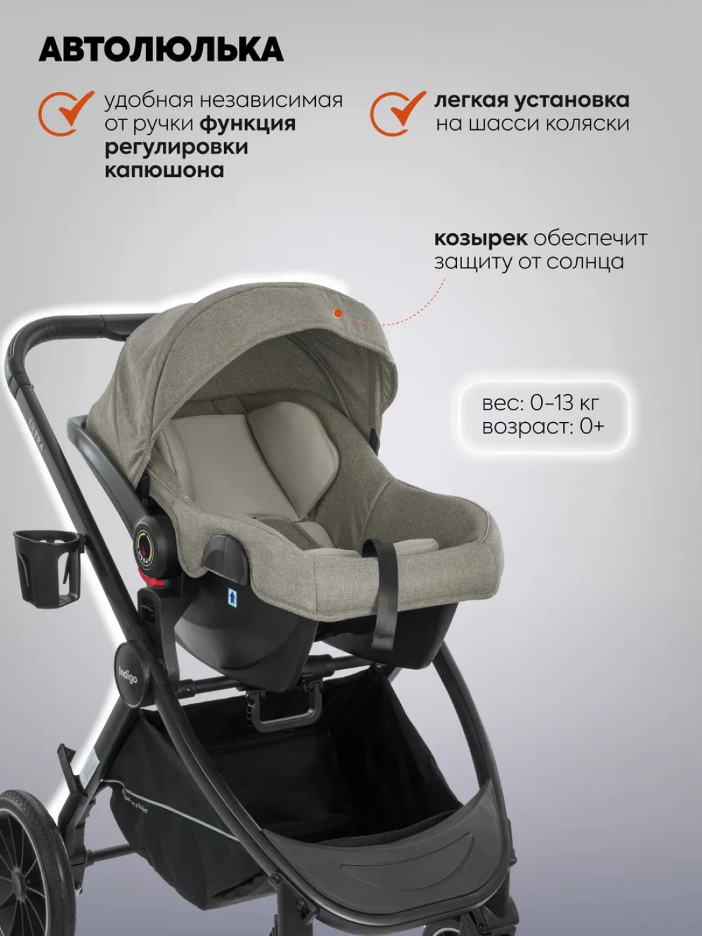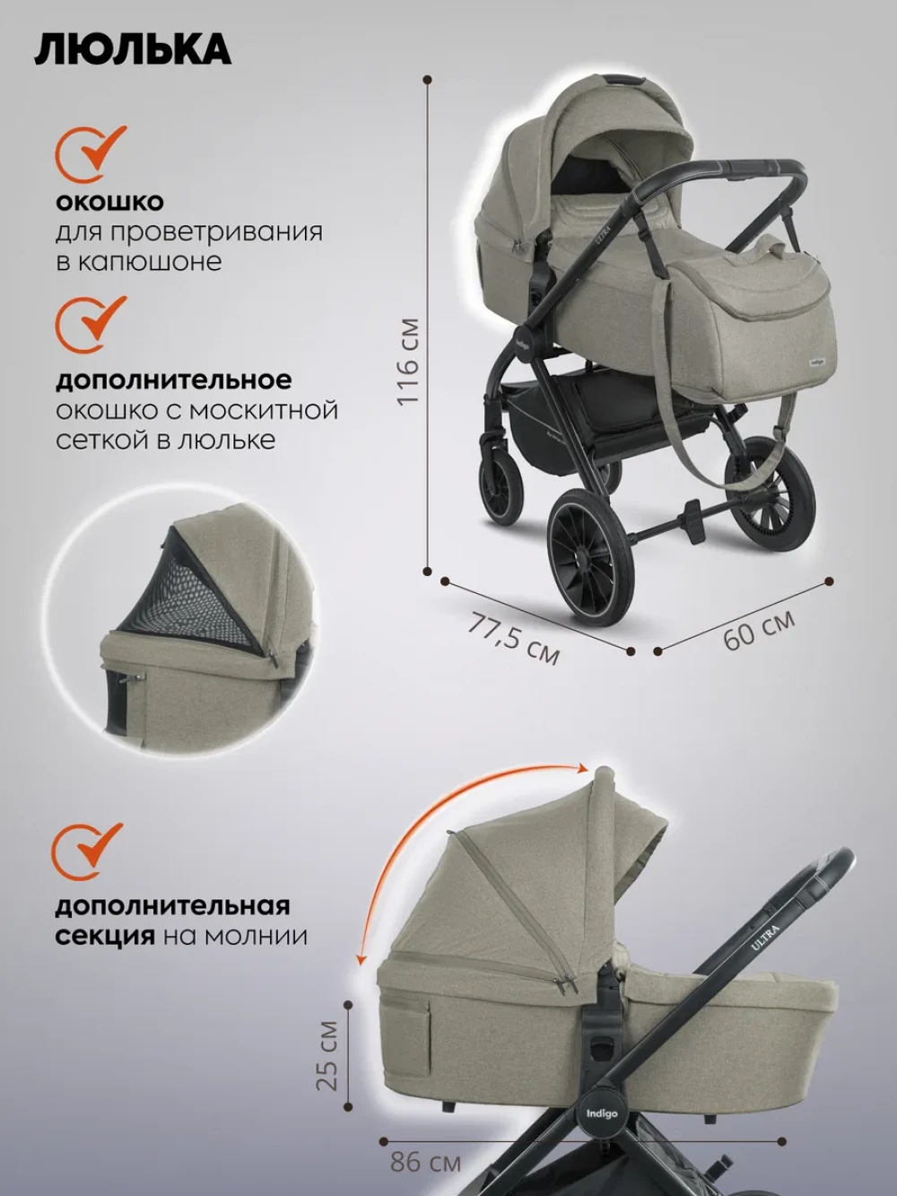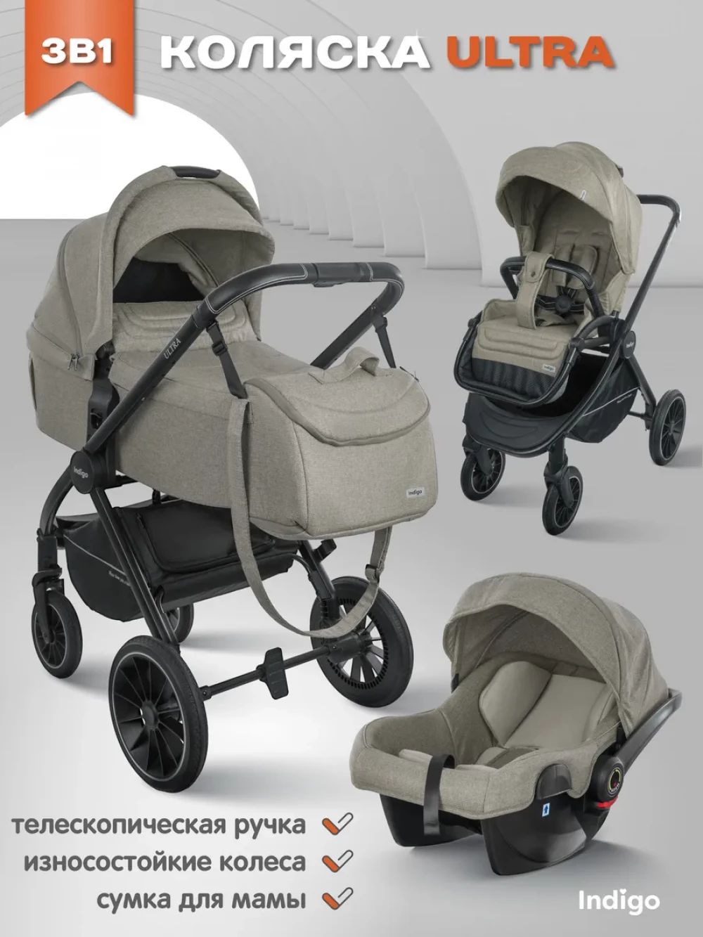 Коляска 3 в 1 Indigo Ultra бежевый