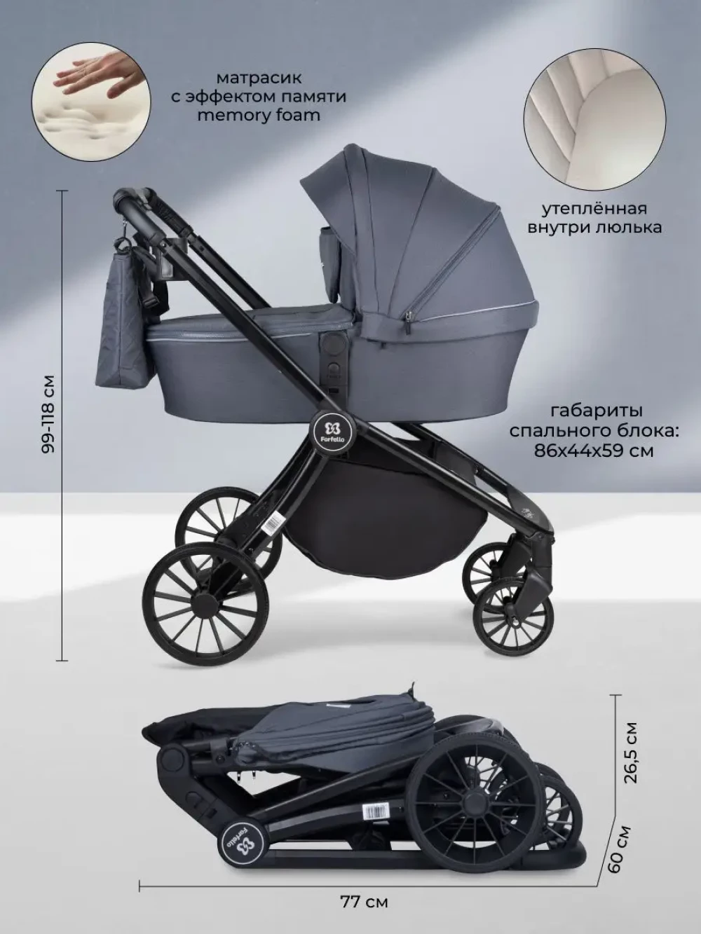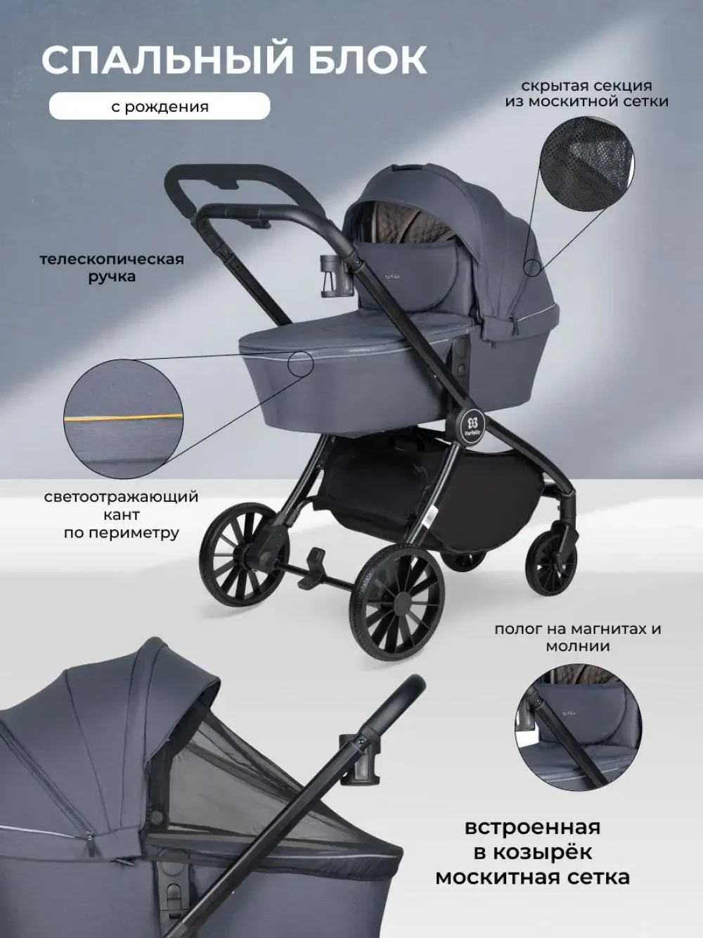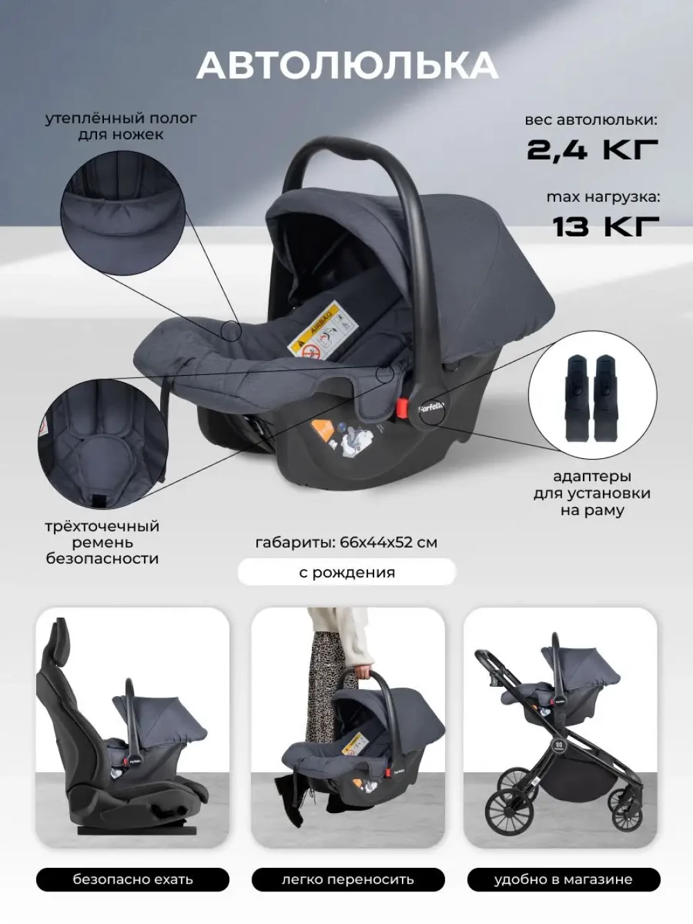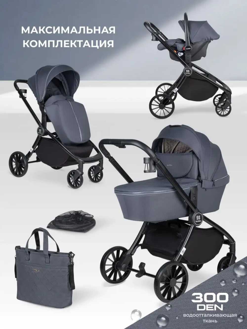 Коляска 3 в 1 Farfello Baby Shell Greige/Серый ч/р