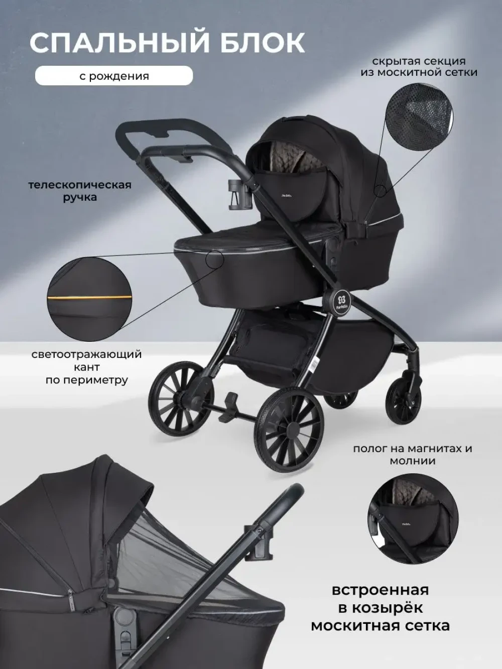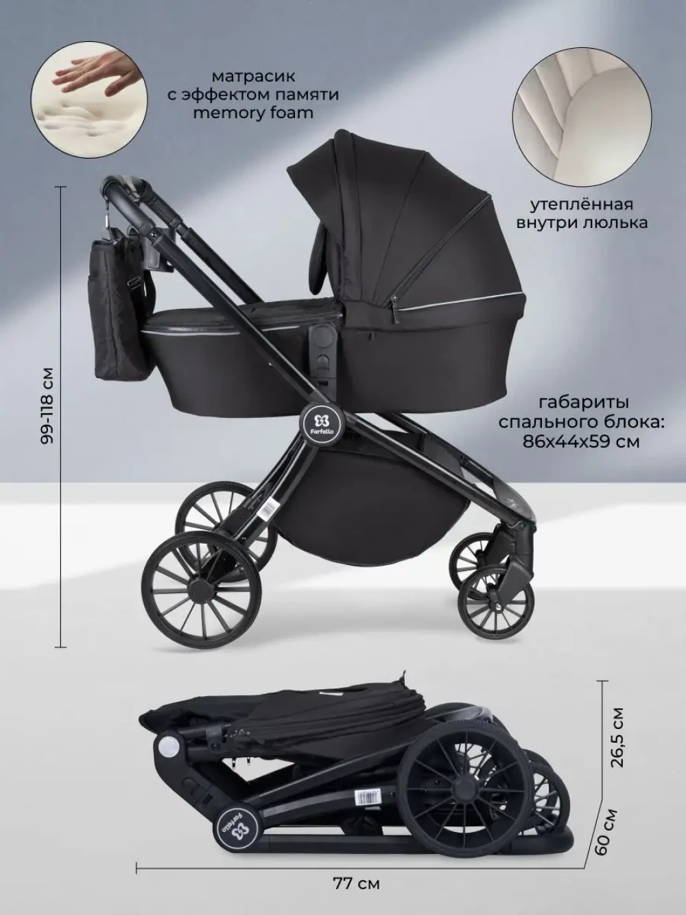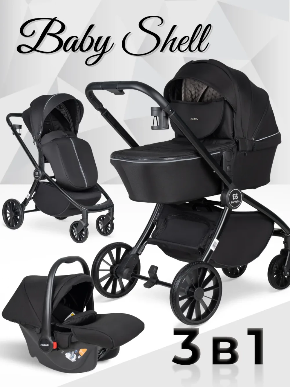 Коляска 3 в 1 Farfello Baby Shell Black ч/р