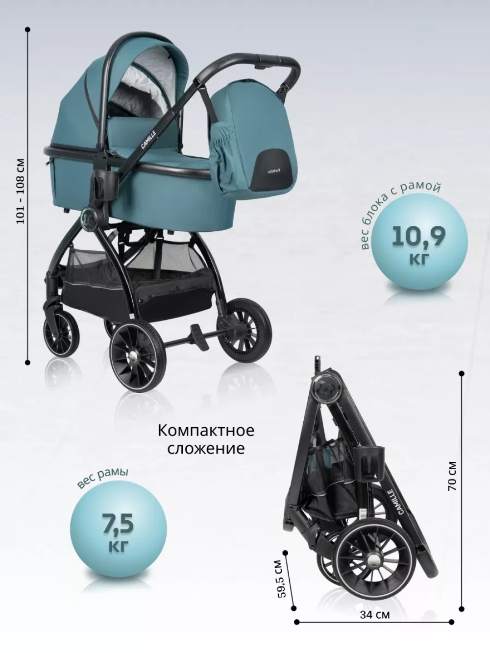 Коляска 3 в 1 Farfello Camille 2024 Ultramarine