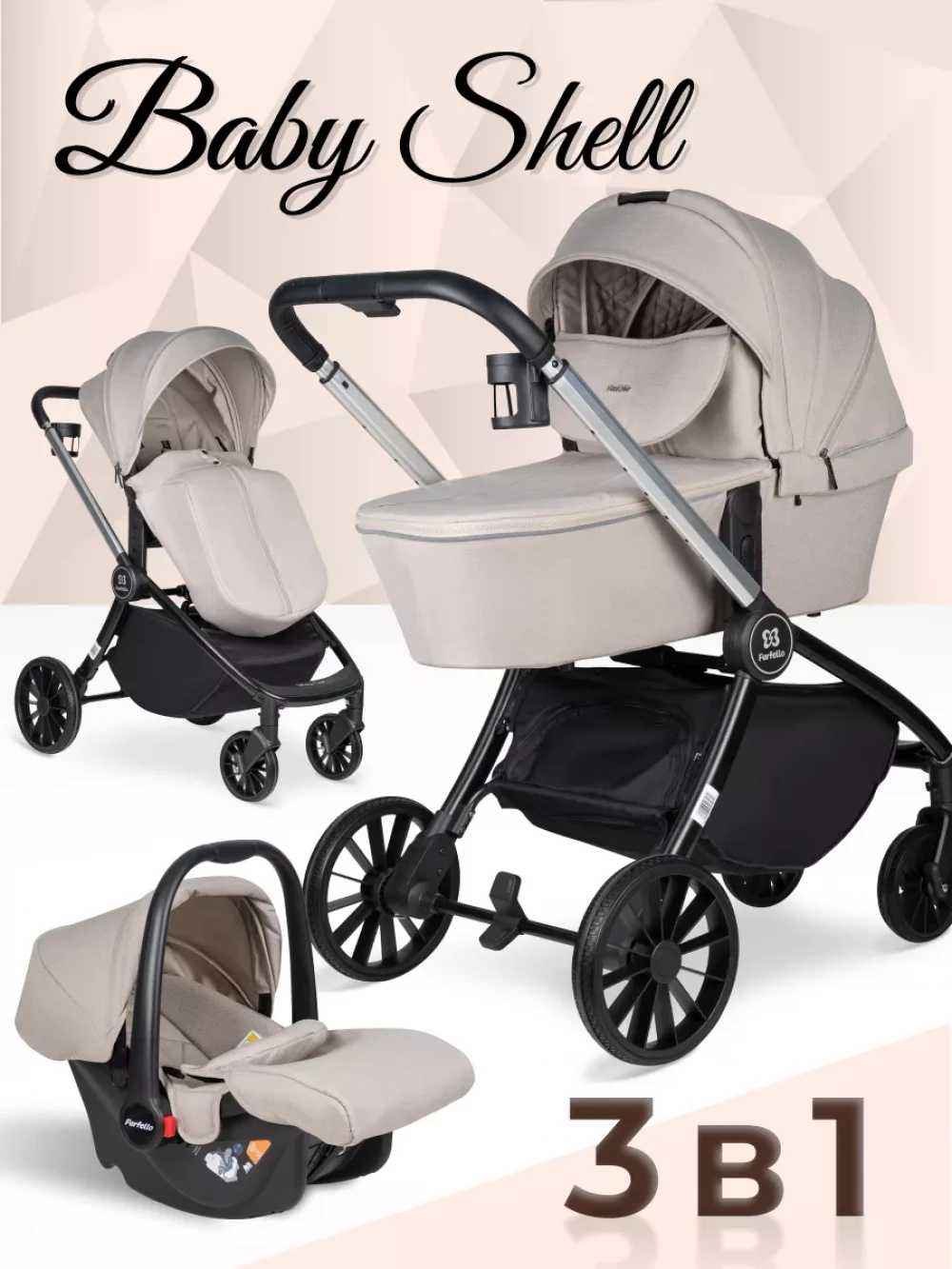 Коляска 3 в 1 Farfello Baby Shell Coffee/Кофейный