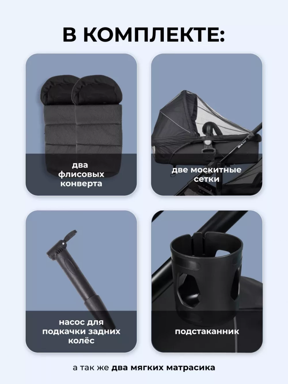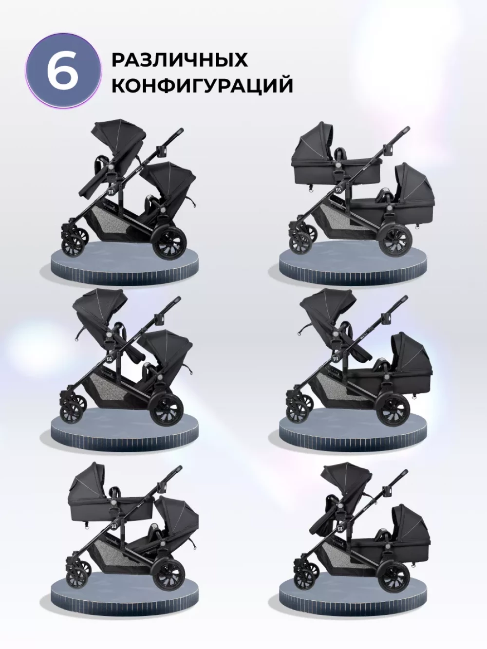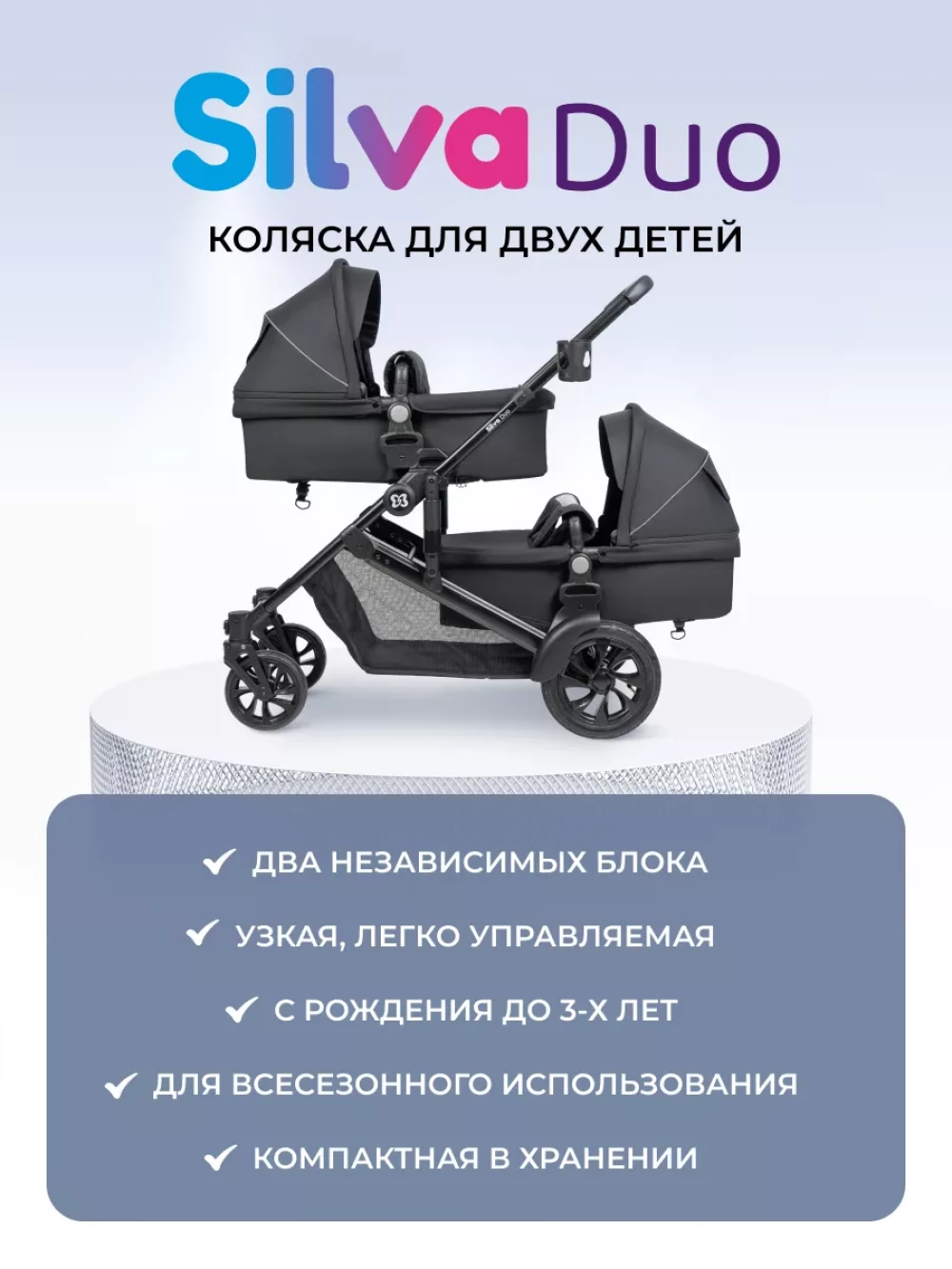 Коляска для двойни Farfello Silva Duo Black