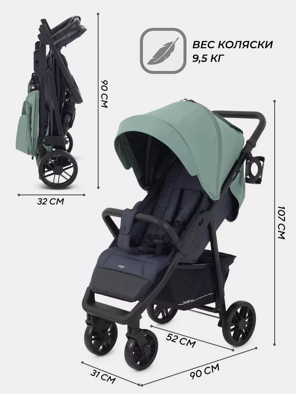 Коляска прогулочная Rant Vega RA105 Green